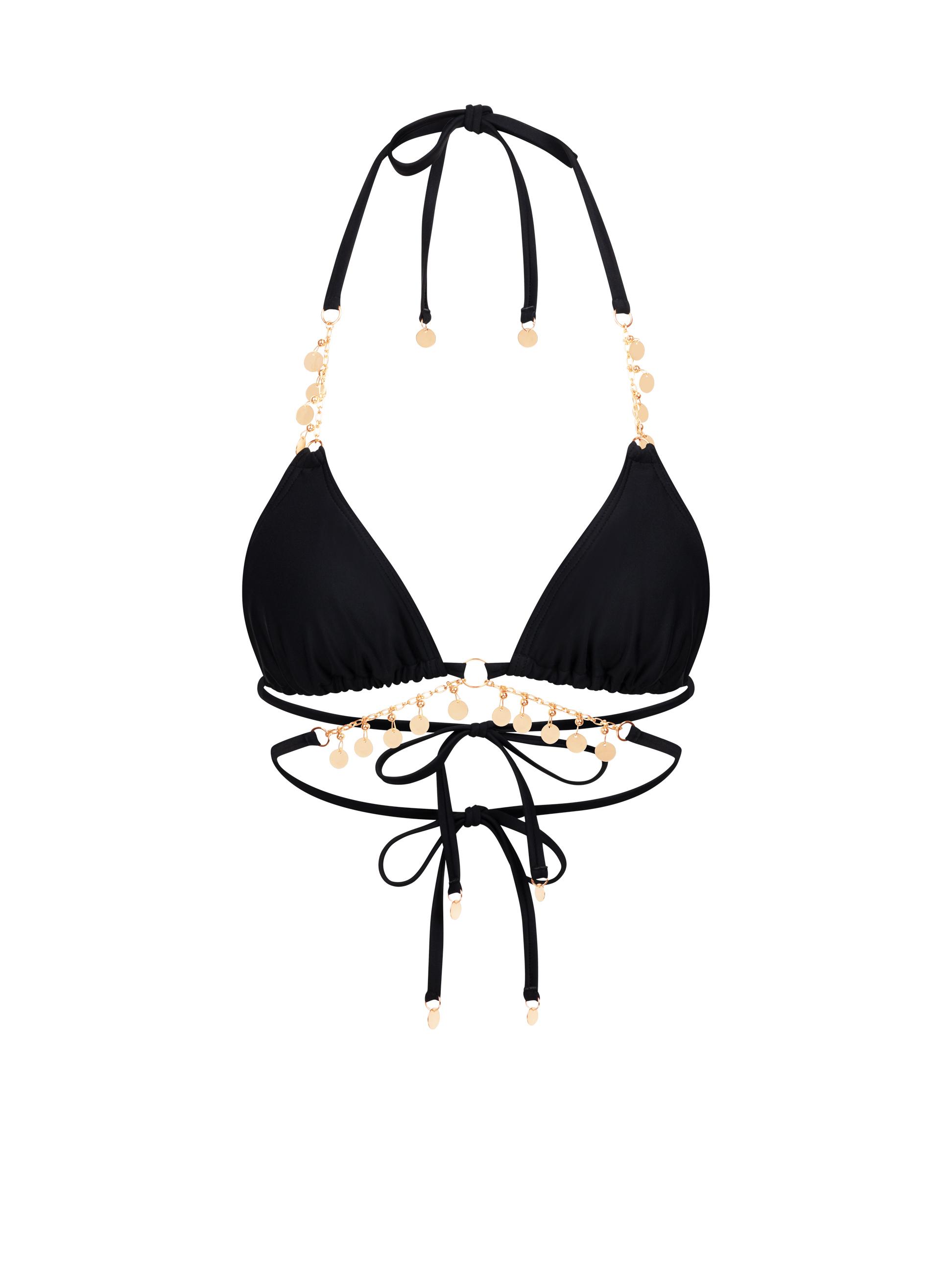 Das super modische Bikini Oberteil 'Valentina Coin' von Moda Minx strahlt mit der Sonne um die Wette! Es ist ein richtiger Hingucker in der Sommerzeit. Durch den tollen Schnitt, passt es sich schmeichelnd an den Körper an. Nicht nur perfekt für den Strandurlaub, sondern auch für die Badezeit am See oder Schwimmbad. Um den Look zu vervollständigen, kombinieren Sie das passende Unterteil dazu. Das Bikini-Oberteil wird im Nacken und am Rücken gebunden.