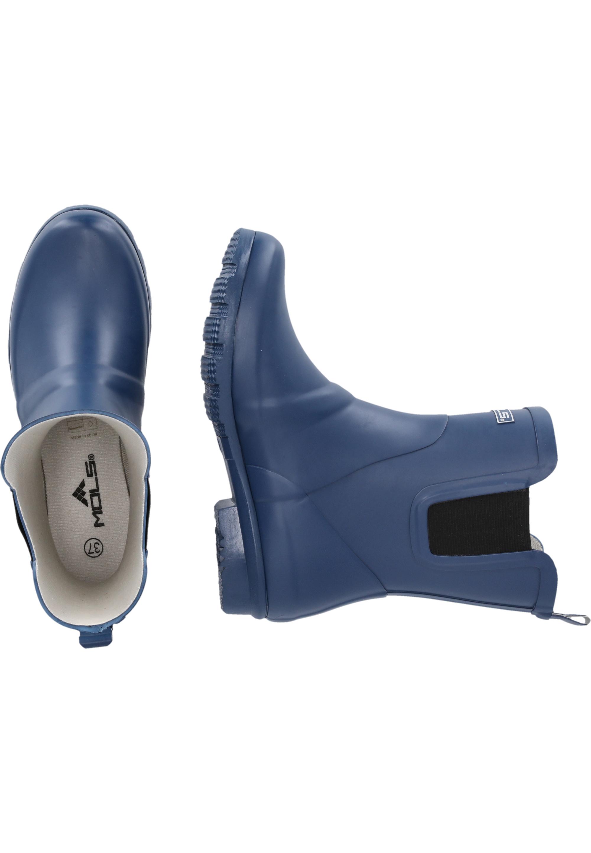 Im Regen tanzen! Der kultige Damen Gummistiefel "Suburbs" von MOLS im smarten Stiefeletten-Design macht Regentage besser. Der Gummistiefel wird dich mit seinem angesagten Aussehen und dem dezenten skandinavischen Stil begeistern. Er ist nicht nur für Spaziergänge, Fahrradtouren oder Festivals gut zu gebrauchen, sondern auch für viele andere Aktivitäten, die draußen bei Regen stattfinden. Auf der Innenseite ist ein trageangenehmes weiches Futter verarbeitet. Aus 100% Naturkautschuk und ist zertifiziert ohne Weichmacher (Phthalate-FREI). Das weiche Latex-Gummi gibt dir maximalen Komfort und ist auf natürliche Weise atmungsaktiv, dadurch schwitzen deine Füße nicht. Dem Motto nach „es gibt kein schlechtes Wetter, sondern nur die falsche Kleidung“ solltest du den hochwertigen Gummistiefel von MOLS nicht verpassen! Funktional, stylisch, modern – das ist MOLS! Die dänische Marke mit Sitz im schönen Silkeborg begeistert mit ihrem großen Repertoire an Outdoor-Bekleidung und -Equipment, der rundum perfekte Reisebegleiter für die ganze Familie und alle Wetterbedingungen. Dabei glänzen die Produkte mit durchdachten und funktionellen Details, die maximalen Komfort und höchste Qualität bieten. Ein angemessenes Preis-Leistungsverhältnis gibt es obendrein.