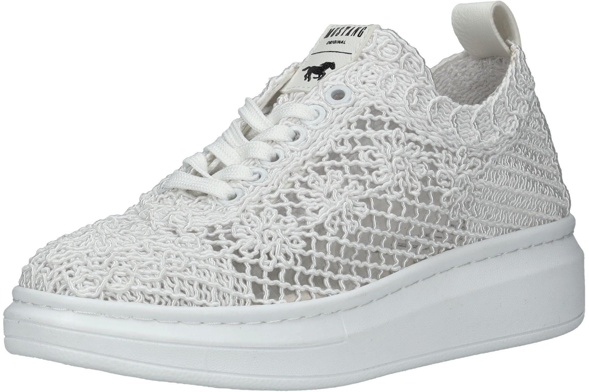 Dieser stylische Sneaker von Mustang ist ein echter Eye-catcher! Er ist aus hochwertigem Crochet-Material hergestellt und der angesagteste Begleiter in der kommenden Sommer Saison. Das Design ist sportlich und der Sneaker super gemütlich. Die Schnürung sorgt nicht nur für schnelles An- und Ausziehen, sondern auch für einen guten Sitz. Die Innensohle kann bei Bedarf gewechselt werden.
