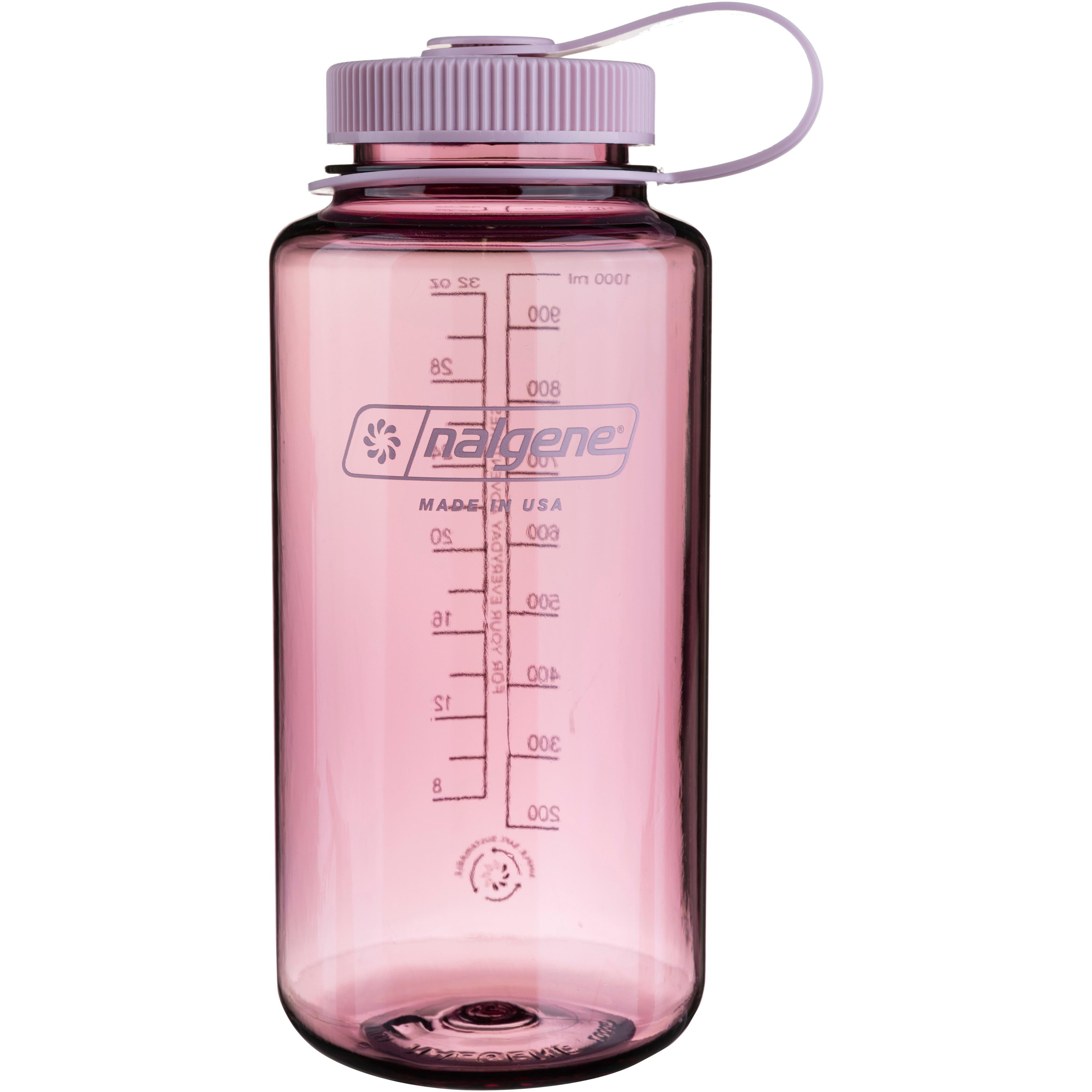 Weithalsige Trinkflasche aus BPA- und BPS-freien Kunststoff; ca. 1 Liter Fassungsvermögen; Oz- und ml-Skala auf der Seite; Schraubverschluss mit Deckelbefestigung; teilweise aus Recyclingmaterial.