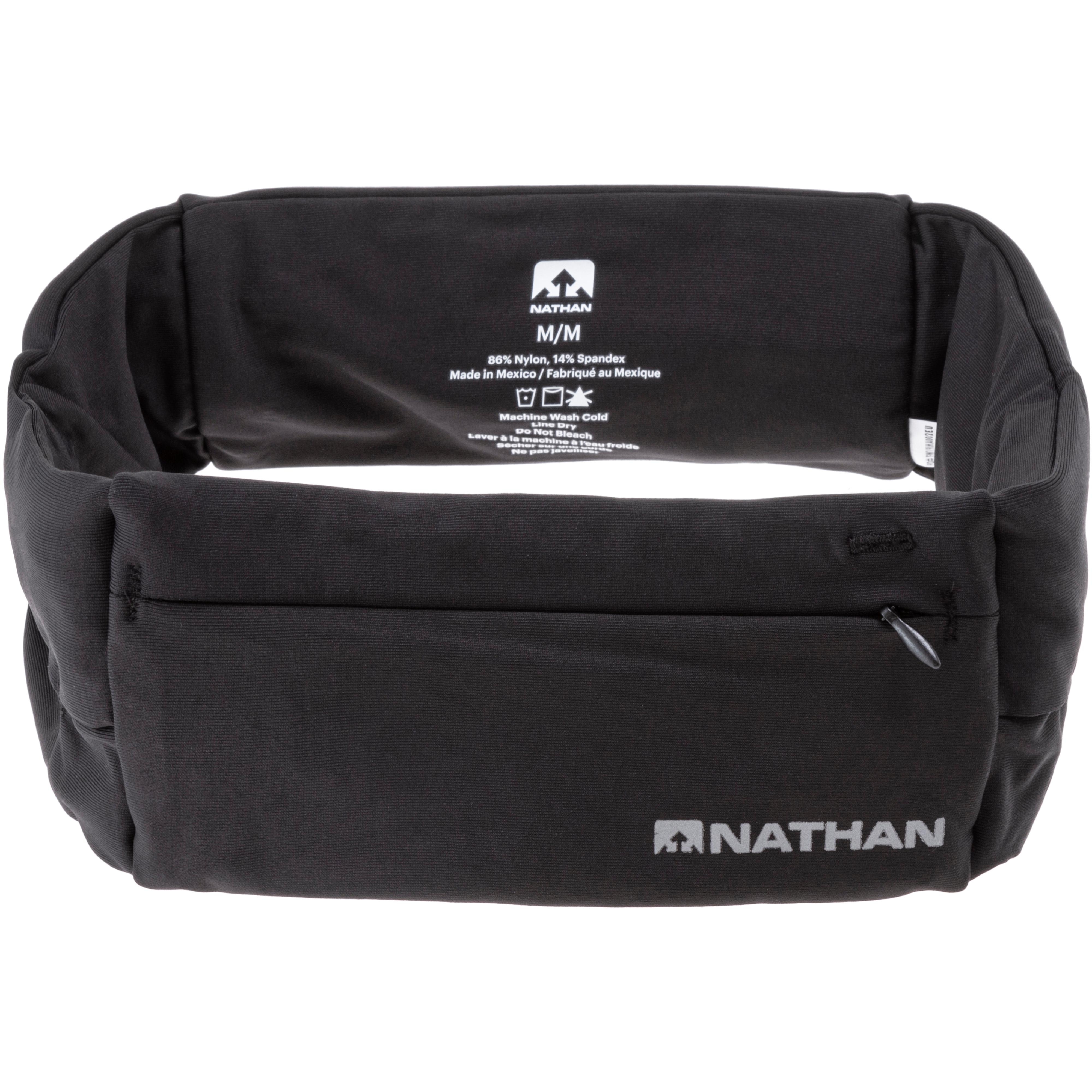 Bauchtasche aus bewegungsfreundlichem Stretchgewebe, mit wasserfesten Reißverschlussfächern in Front- und Rückenbereich; genug platz für die meisten, handelsüblichen Smartphones; Maße (B/H): ca. 39 x 9 cm (Gr. M); verschiedene Größen erhältlich; Material 86% Polyamid, 14% Elastan.