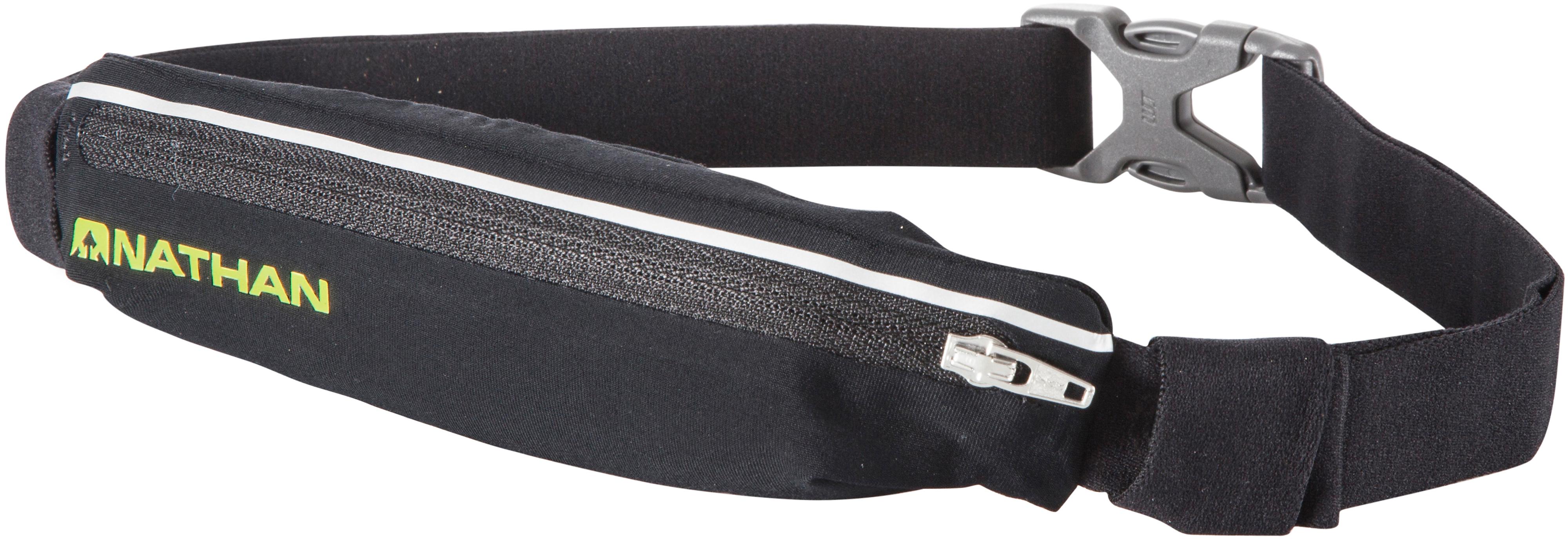 Laufgürtel mit Reißverschlusstasche für Smartphones, Schlüssel, Geld und die Rennverpflegung; mit weichem Futter; durch den verstellbaren, elastischen Stretchgürtel passend für jede Größe; mit Reflektoren für bessere Sichtbarkeit; Schlüsselring in der Tasche; Material 70% Polyamid, 20% Elastan, 10% Polyester.