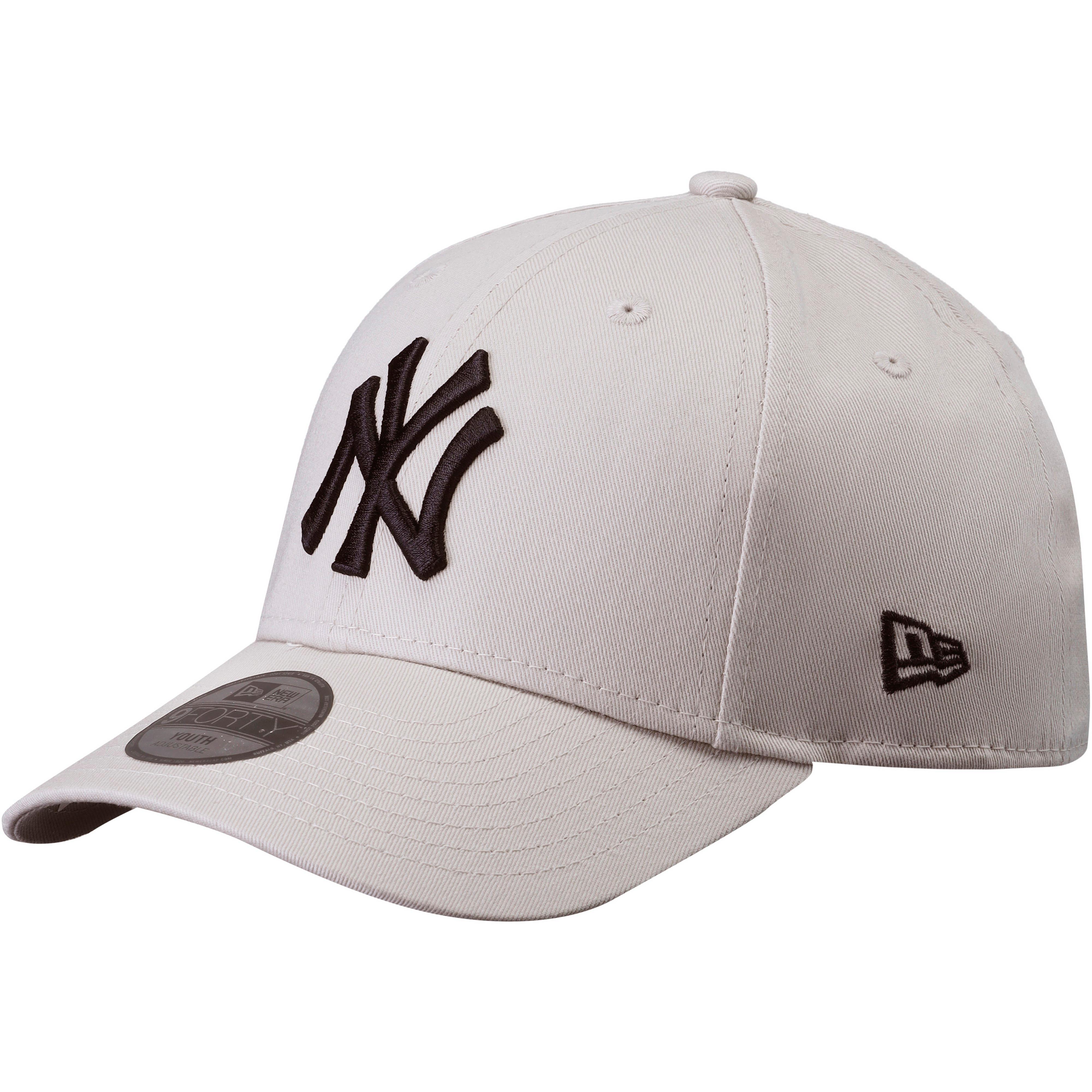 Cap für Kinder, mit gebogenem Schirm und Logo-Stickerei der New York Yankees auf der Vorderseite; Belüftungsöffnungen am Oberkopf; Verstellriegel am Hinterkopf; Material 100% Baumwolle.