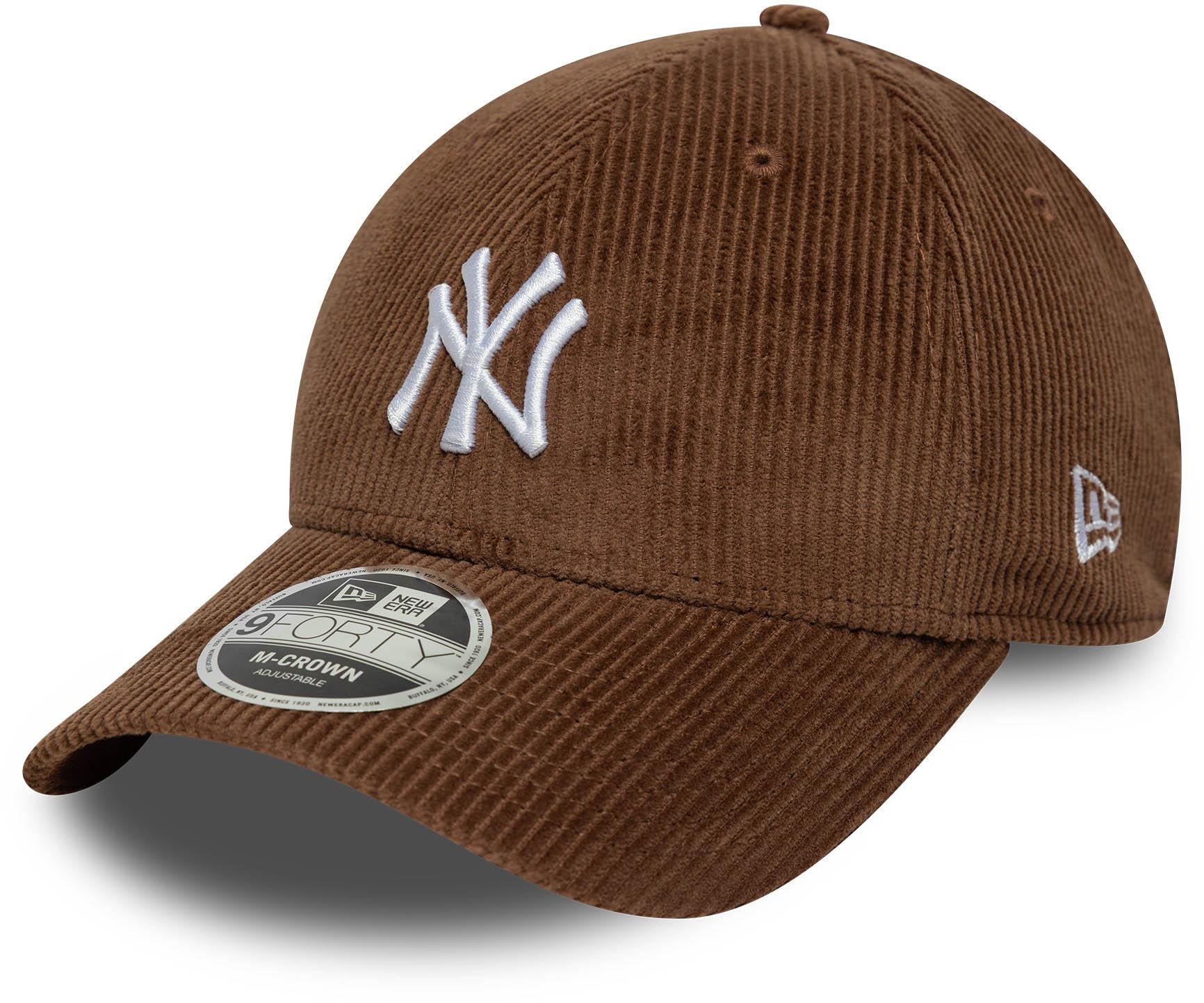 Cap aus Cord-Material mit Logostickerei der New York Yankees; gebogener Schirm; verstärkte Krone; 6-Panel-Design; Belüftungsösen; gesticktes Markenlogo an der Seite; verstellbarer Snapback-Verschluss; Material 100% Baumwolle.