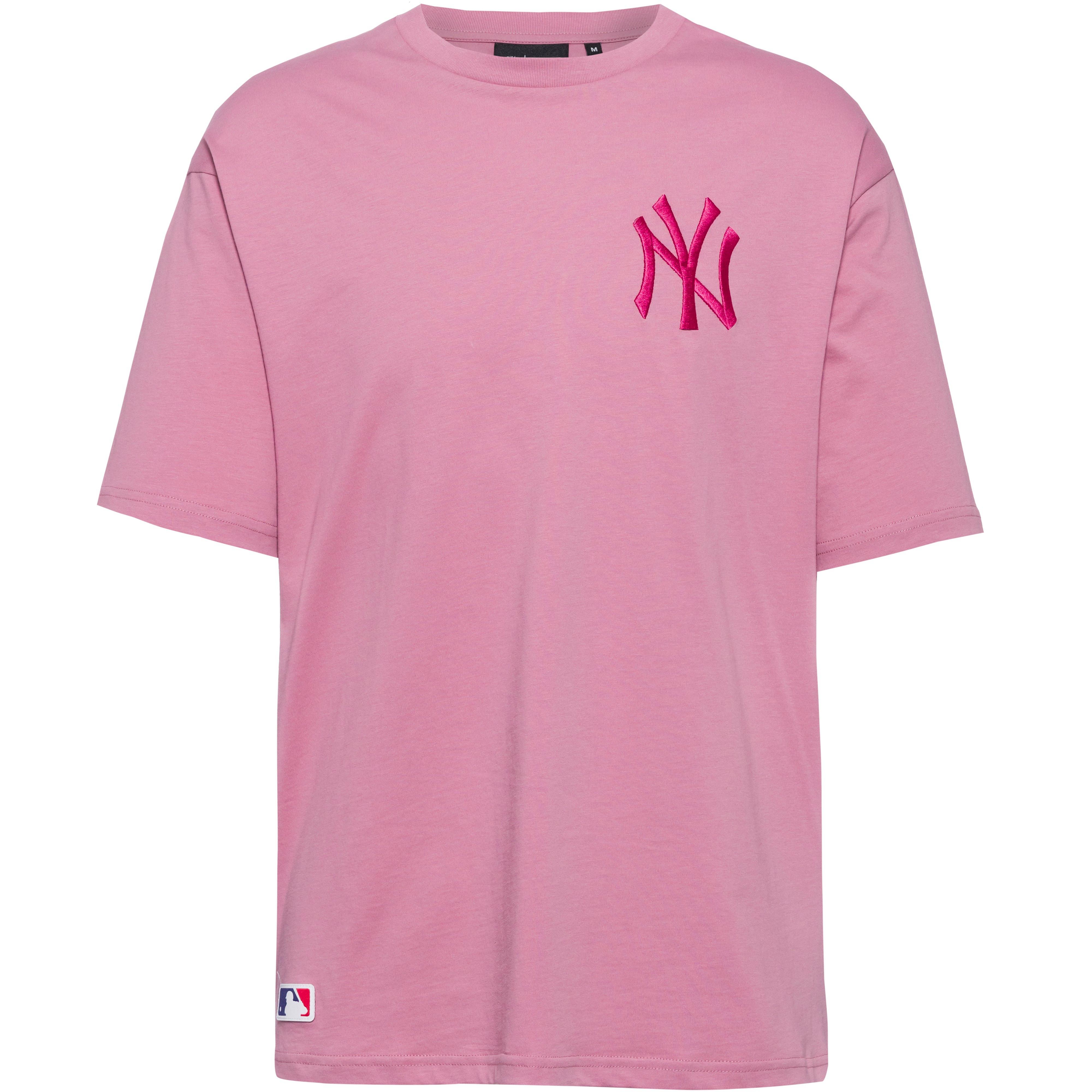 T-Shirt mit aufgesticktem New York Yankees-Logo auf der Vorderseite; lockere Passform mit geripptem Rundhalsausschnitt; Material 100% Baumwolle.
