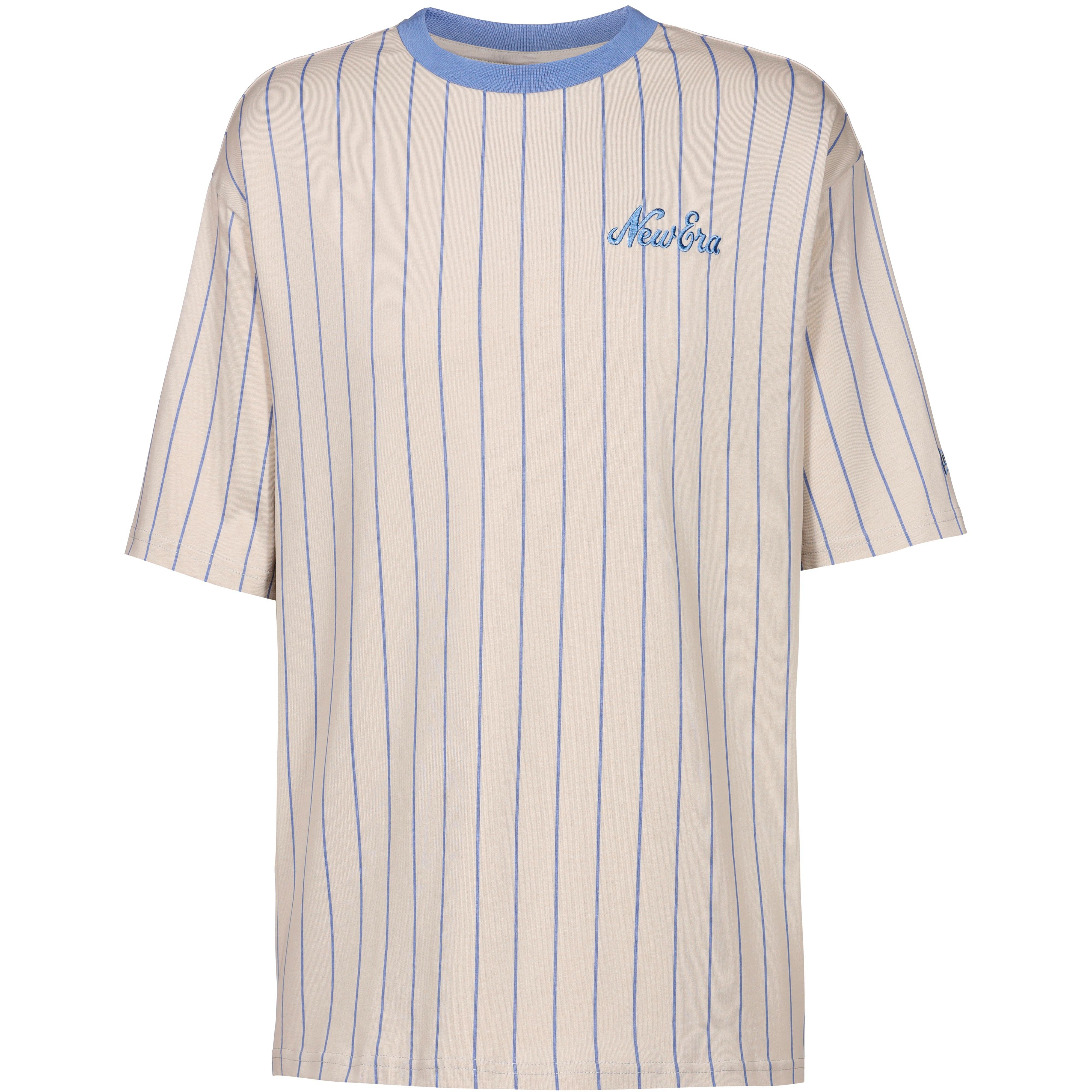 Lässiges Oversized-T-Shirt mit Nadelstreifen-Design; gerippter Rundhalsausschnitt mit Nackenband; Logostickerei auf Brusthöhe und am Ärmel; Material 100% Baumwolle.