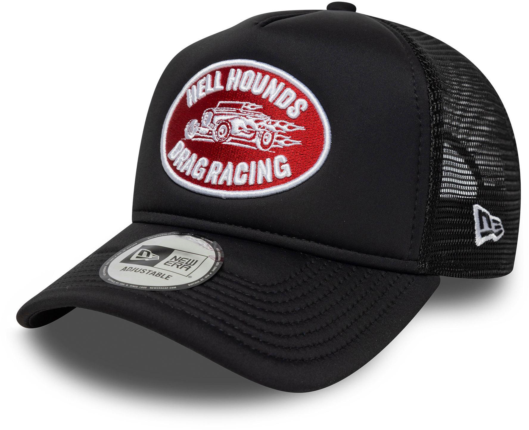 Trucker-Cap mit hohem Profil und gebogenem Schirm; Rückseite aus Mesh; Vorderseite mit Hell-Hound-Drag-Racing-Patch; gestickte Logoapplikation an der Seite; verstellbarer Snapback-Verschluss auf der Rückseite; Material 50% Polyester, 42% Polyamid, 8% Elastan.