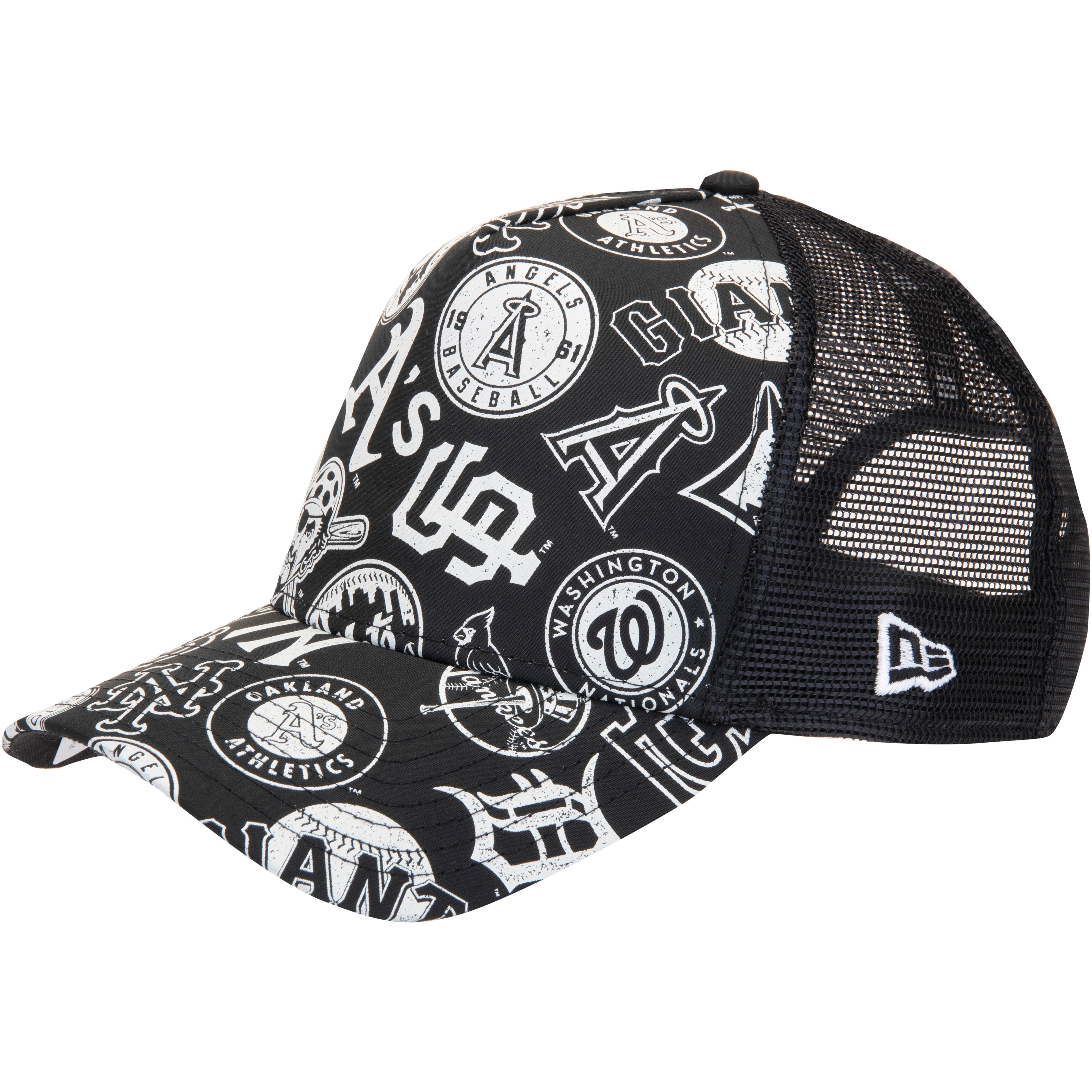 Trucker-Cap mit MLB-Alloverprint auf der Front; gebogener Schild; Verstellriegel am Hinterkopf; Hinterkopf aus Mesh; Material 100% Polyester.