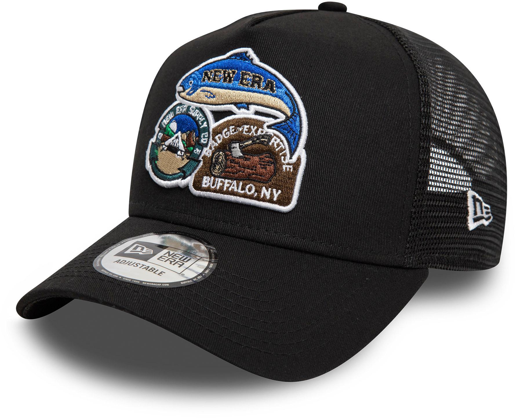 Trucker Cap mit einem aufgestickten Outdoor-Labelpatch; hohes Profil mit verstärkter Krone; gebogener Schirm; Labeldetail an der Seite; Mesh-Rückseite mit verstellbarem Snapback-Verschluss; Material 50% Baumwolle, 50% Polyester.