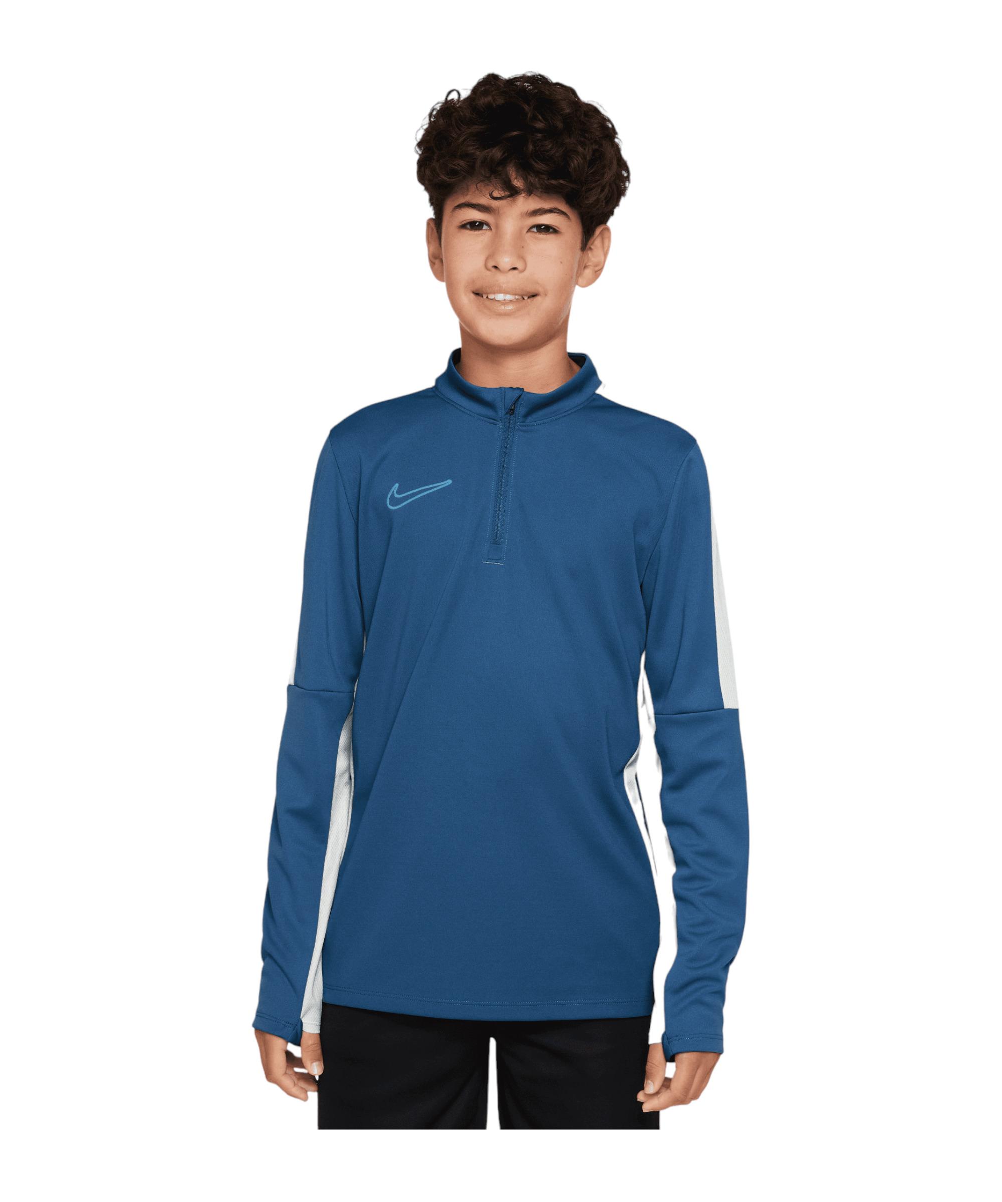 Das leichte Modell in Blau ist genau die richtige Wahl für aktive Kids, die Spaß an Bewegung haben. Mit dem Kinder-Shirt aus dem Hause Nike kann man wirklich nichts falsch machen. Die Daumenöffnungen bieten Extra-Kälteschutz für die Hände und geben auch bei Bewegung optimalen Halt. Das atmungsaktive, leichte, super bequeme und schweißableitende Modell überzeugt auf ganzer Linie. Mit dem Sweatshirt stellt dir der 1971 gegründete und international führende Sportartikelanbieter mit dem Swoosh ein tolles Modell an die Seite. Das Shirt ist langärmlig und hat einen klassischen Rundhals-Ausschnitt. Bei diesem Shirt wird der Verschluss mittels Reißverschlusses sichergestellt. Kinder, die Bewegung und Sport lieben, werden mit diesem Sweatshirt bestens unterstützt. Produktdetails: Extras: Daumenöffnung Ausschnitt: Rundhals-Ausschnitt Langärmlig Technologie: Dri-FIT Eigenschaften: super bequem, atmungsaktiv, leicht Material: 100% Polyester
