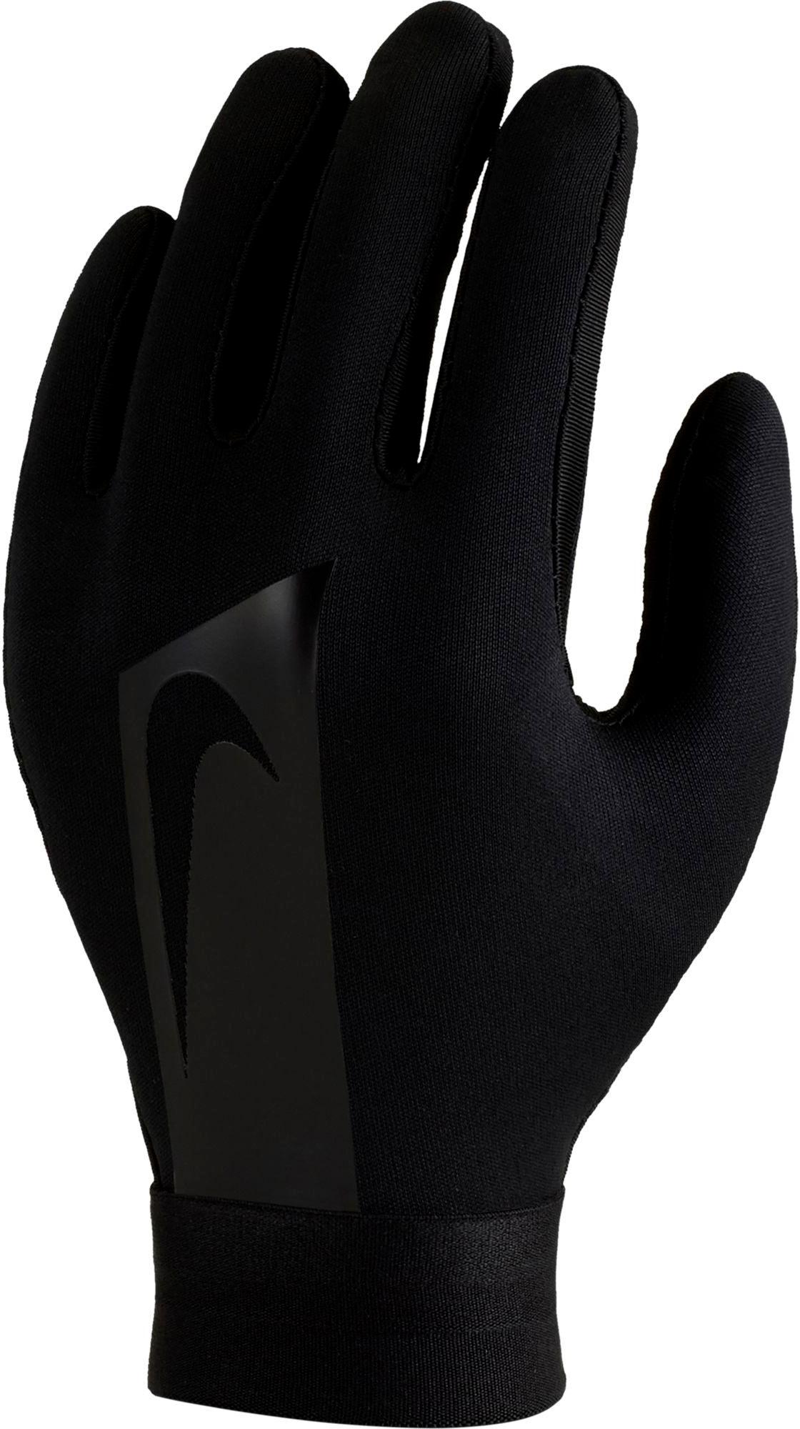 Nike ACADEMY HYPERWARM. Fußballhandschuhe für Kinder aus schweißableitendem Thermo-Material für warme und trockenen Hände; Silikonbereiche an den Fingern und in der Handfläche sorgen für eine bessere Griffigkeit; flexible, dehnbare Bündchen für eine sichere Passform; Swoosh-Logo; Material 60% Polyester, 27% Polyamid, 8% Sonstige Fasern, 5% Elastodien.