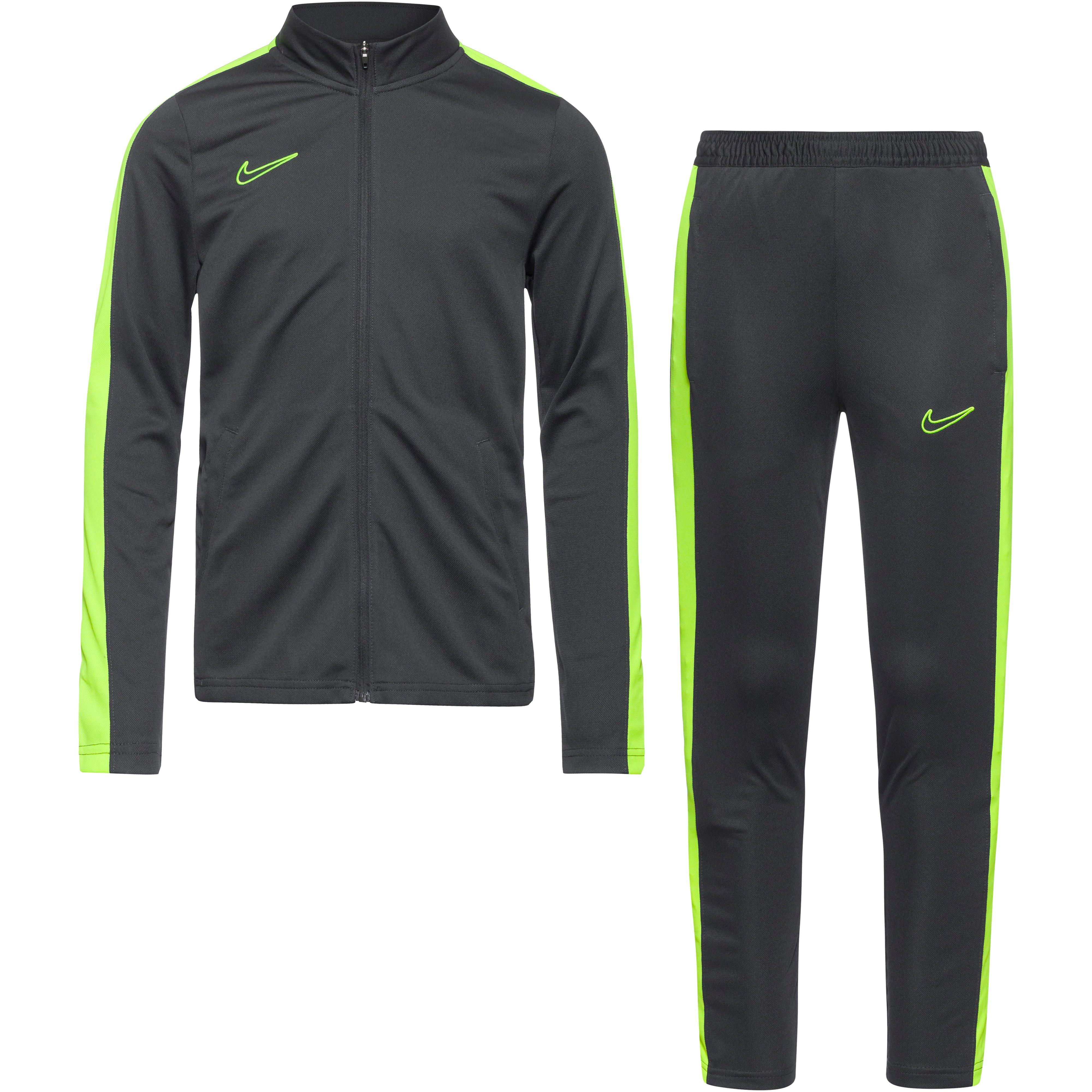 Trainingsanzug für Kinder, mit feuchtigkeitsableitender, schnelltrocknender und atmungsaktiver Dri-FIT-Funktion; normale Passform; Jacke mit Stehkragen; Frontreißverschluss; 2 seitliche Eingriffstaschen; Hose mit Gummibund und innenliegendem Kordelzug; 2 seitliche Reißverschlusstaschen; umweltfreundlich im Rahmen des Nike Move to Zero-Projekts hergestellt; Material 100% Polyester (mindestens 75% recycelt).