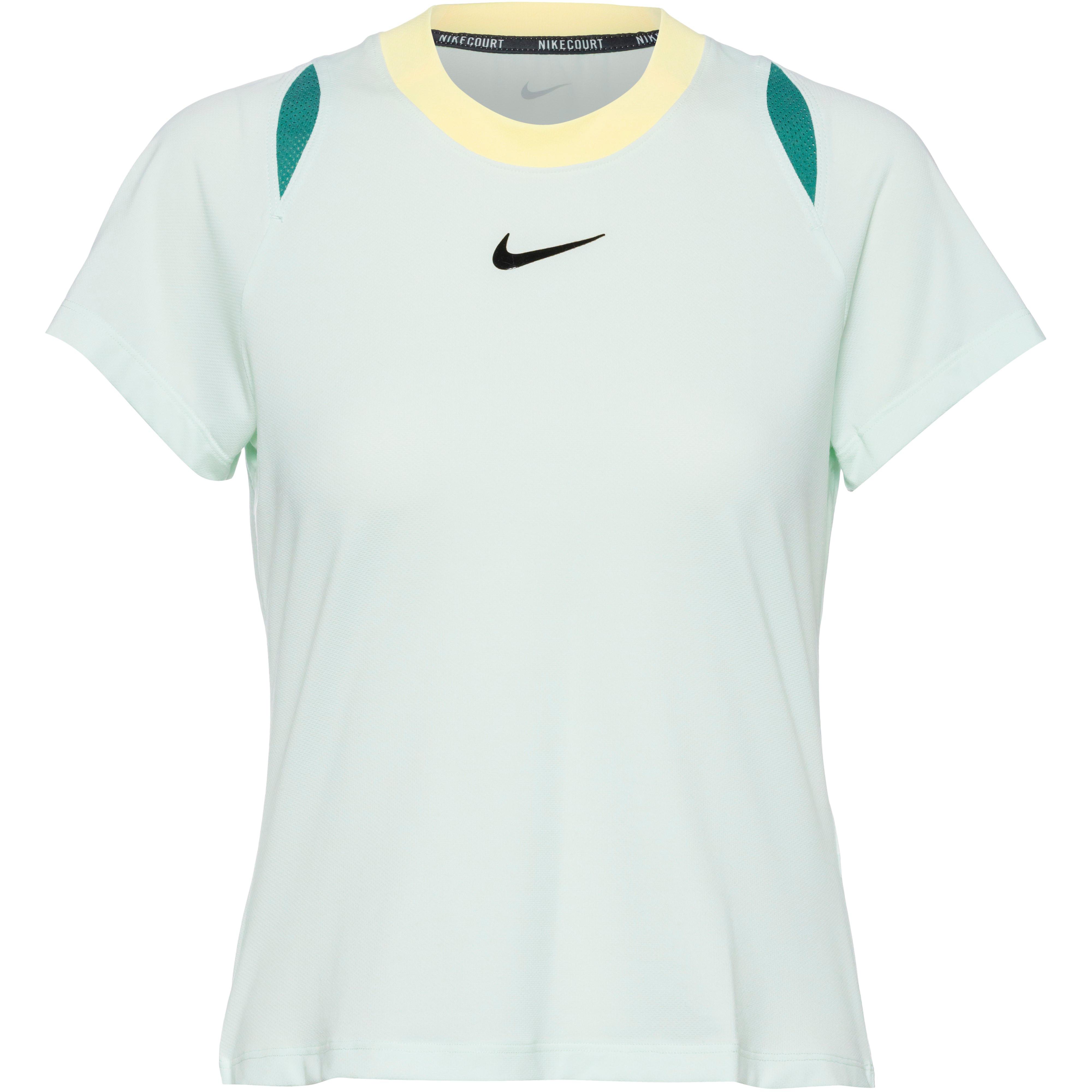 Schmal geschnittenes Tennis-Shirt mit feuchtigkeitsregulierender, schnelltrocknender und atmungsaktiver Dri-FIT-Technologie; Mesh-Einsätze für eine optimale Luftzirkulation; Rundhalsausschnitt und Logoprint; Material I 85% Polyester, 11% Lyocell, 4% Elastan, Material II 100% Polyester.