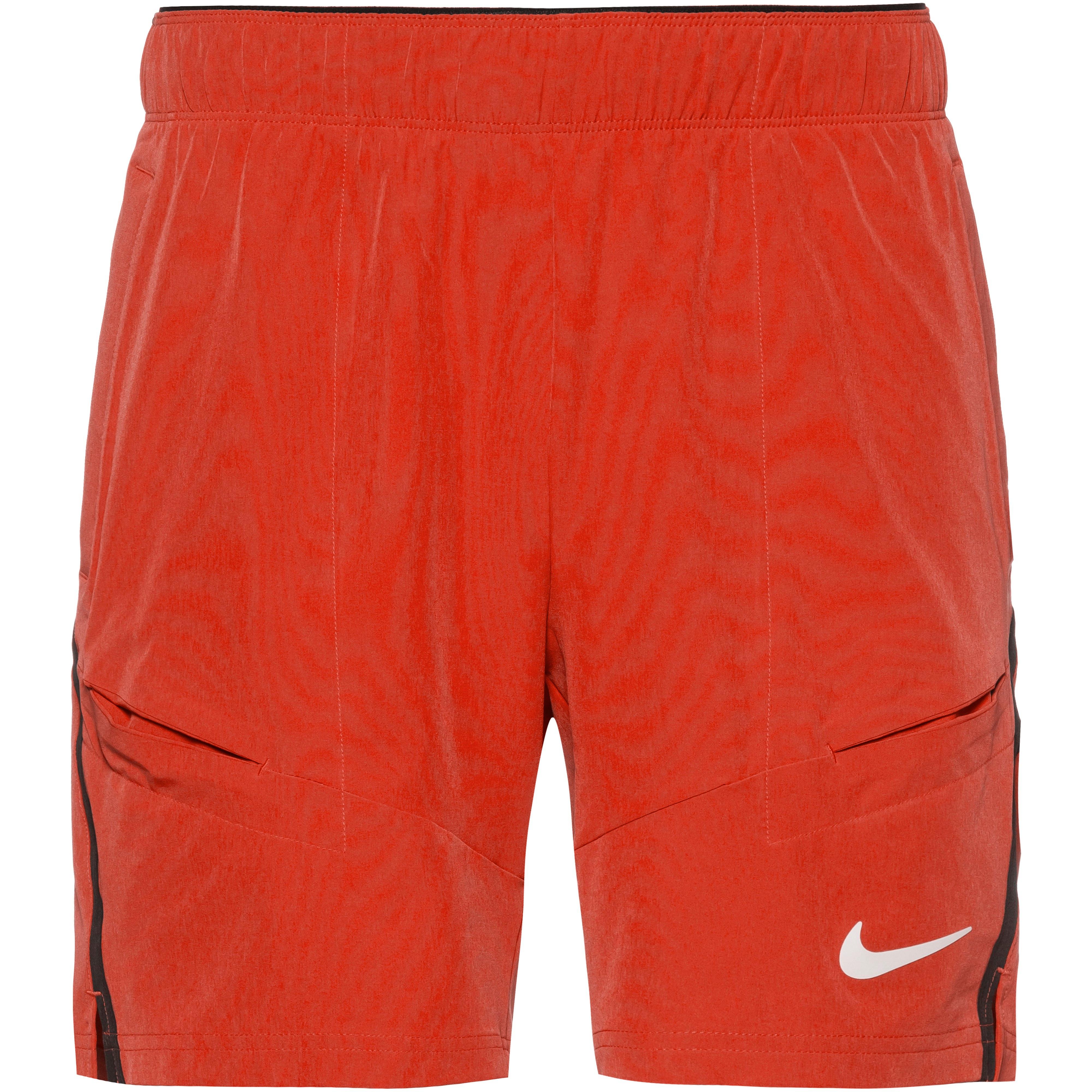 Tennisshorts aus leichtem, elastischem Material; mit feuchtigkeitsableitender, schnelltrocknender und atmungsaktiver Dri-FIT-Funktion; elastischer Bund mit innerem Kordelzug; innovative Seitentaschen, in denen Tennisbälle verstaut werden können; seitliche Kontraststreifen; Saum mit kurzen Seitenschlitzen; Logodetail am Bein; Seitenlänge: ca. 42 cm (Gr. M); als Teil des Move to Zero-Programms mit Recyclingmaterial hergestellt; Material I 89% Polyester, 11% Elastan; Material II 100% Polyester.