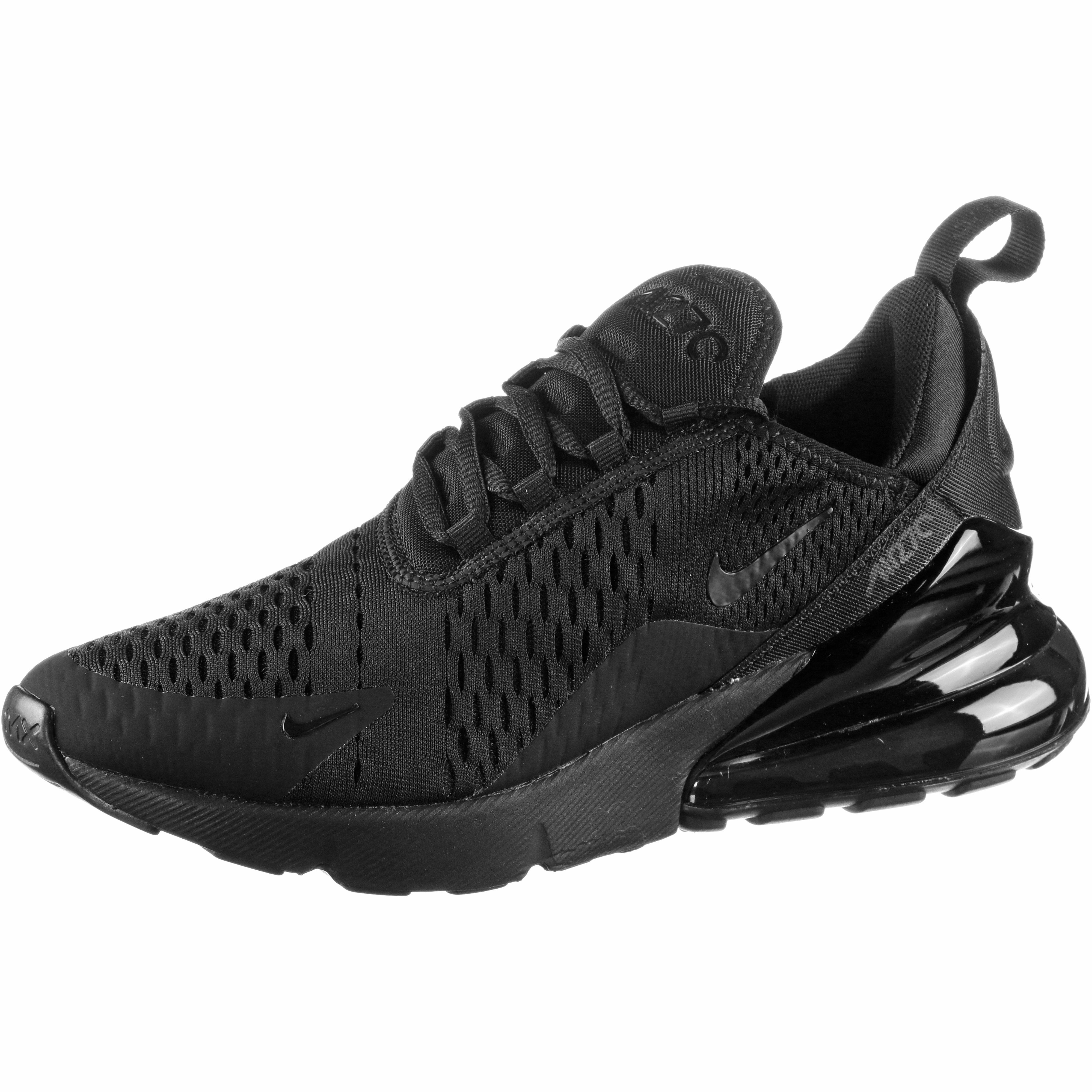 Nike AIR MAX 270. Zungenlos konstruierte Sneaker aus nahezu nahtlosem, atmungsaktivem Mesh; asymmetrische Schnürung mit seitlichen Zuglaschen, für eine sichere Passform; gepolsterter Schaftbereich mit Zuglasche zum leichteren An- und Ausziehen; schützende Fersen-Kappe; dämpfende Zwischensohle aus Dual-Density Schaumstoff mit zusätzlich dämpfenden Max Air Elementen im Fersenbereich; herausnehmbare Einlegesohle; Obermaterial und Innensohle aus Textil; robuste Außensohle aus Gummi.