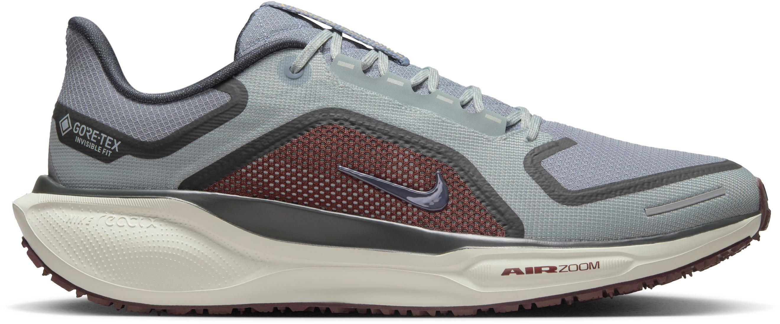 Neutrale Laufschuhe in wetterfestem Design mit GORE-TEX Membran; dauerhaft wasser- und winddicht sowie atmungsaktiv; Obermaterial mit technischem Mesh im Zehenbereich; der Mittelfußriemen passt sich dem Fußgewölbe an und sorgt für einen vorgeformten, sicheren Sitz; klassische Schnürung; Textilfutter; Zwischensohle aus weich dämpfendem ReactX-Schaumstoff mit 2 Zoom Air-Elementen für ein federndes Laufgefühl; Gummi-Außensohle mit Storm Tread-Profil für optimale Traktion, auch bei nassem Wetter; ideal für Straße und Park sowie für Wald- und Feldwege geeignet; reflektierende Details; neutrale Pronation; normale Schuhweite; Gewicht: ca. 594 g (Paar); Sprengung: 10 mm.
