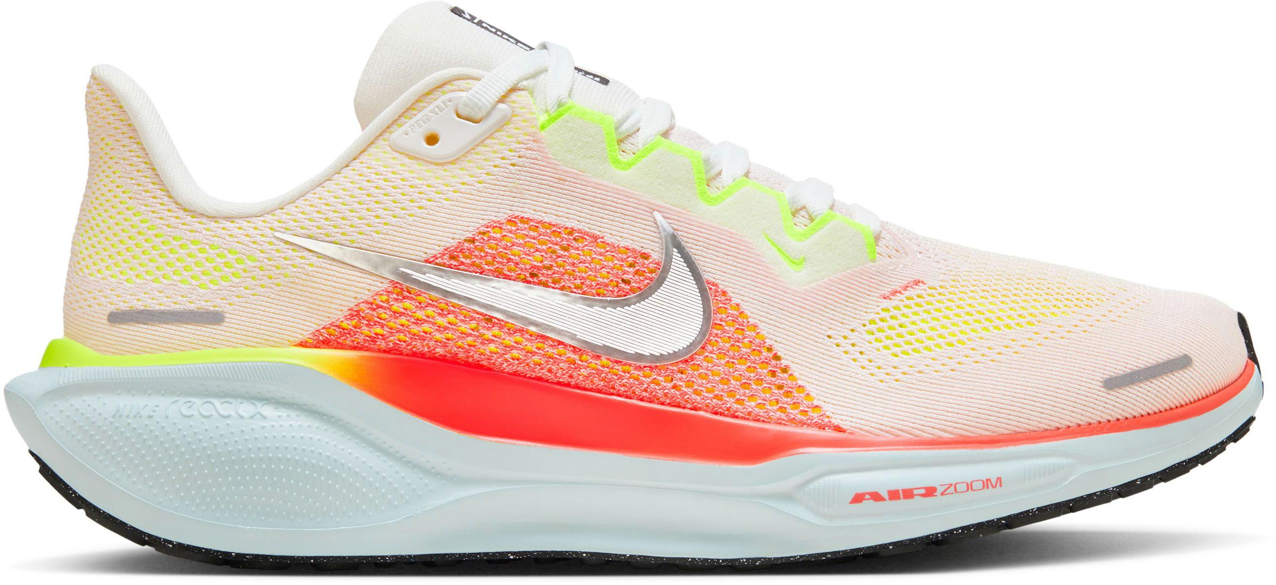 Neutrale Laufschuhe aus leichtem und atmungsaktivem Mesh-Obermaterial; Vorfuß und Ferse etwas breiter gestaltet; mit Schnürung und Labeldetails; Mittelfußband für einen sicheren, fehlerverzeihenden Tragekomfort; Mittelsohle aus Nike ReactX-Schaumstoff für ein reaktionsfreudiges Laufgefühl; mit 2 Zoom Air-Elementen für zusätzliche Dämpfung; leicht profilierte Gummi-Laufsohle; geeignet für Normalpronierer; ideal für Straße und Park sowie für Wald- und Feldwege geeignet.