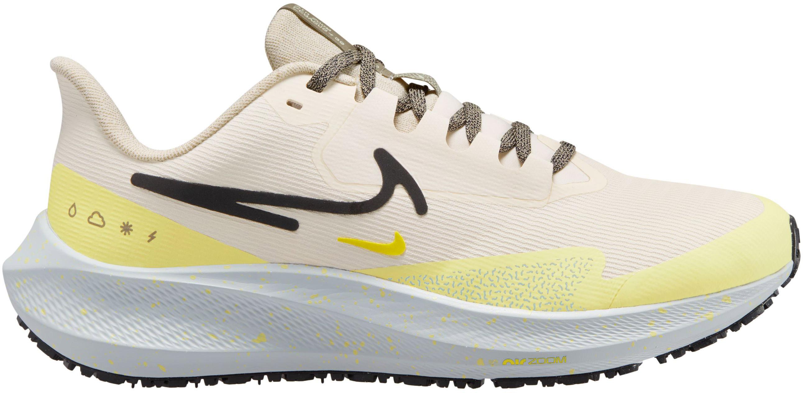 Neutrale Laufschuhe mit wasserabweisender Beschichtung, verstärkter Zunge und Schnürung; Strick-Obermaterial mit Überzügen an den Zehen für trockenen Tragekomfort; 2 Zoom Air-Elemente für eine weiche Dämpfung; Nike React-Technologie für ein reaktionsfreudiges Laufgefühl; wärmende, fleece-ähnliche Innenseite; Labeldetails; Storm Tread-Außensohle mit robuster Traktion bei nassem Wetter; Mikrokerben für einen optimalen Grip; reflektierende Details; ideal für Straße und Park sowie für Wald- und Feldwege geeignet.