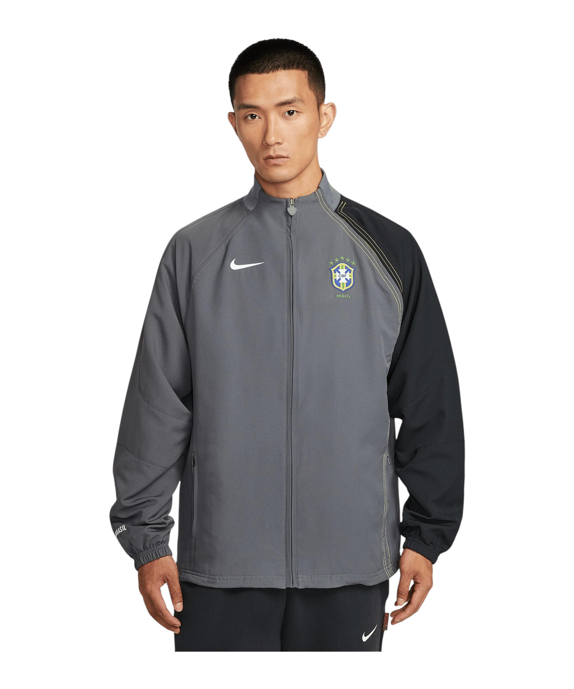 Mit der Nike Brazil Reissue Jacke bist du bestens ausgestattet, um dein Training mit Stil und Komfort zu meistern. Diese Jacke ist ideal für alle, die sich für die brasilianische Nationalmannschaft begeistern und ihre Unterstützung auch beim Training zeigen wollen. Dank der Dri-FIT-Technologie bleibt dein Körper trocken und angenehm, selbst wenn du ins Schwitzen kommst. Die praktischen Reißverschlusstaschen an der Seite bieten dir sicheren Stauraum für deine Essentials. Das auffällige Verbandslogo auf der Brust zeigt deine Verbundenheit mit dem Team und verleiht der Jacke einen authentischen Look. Schnapp dir die Nike Brazil Reissue Jacke und erlebe, wie sie dein Training auf das nächste Level hebt. Du wirst die Qualität und den Style von Nike in jedem Moment spüren. Produktdetails:Herstellerfarbbezeichnung: DARK GREY/BLACK/YELLOW STRIKE/WHITEHauptfarbe: GrauTechnologie-Eigenschaften: atmungsaktiv, komfortabel, leichtTechnologie: Dri-FITTaschen: Reißverschlusstaschen an der SeiteMaterial: 100% Polyester