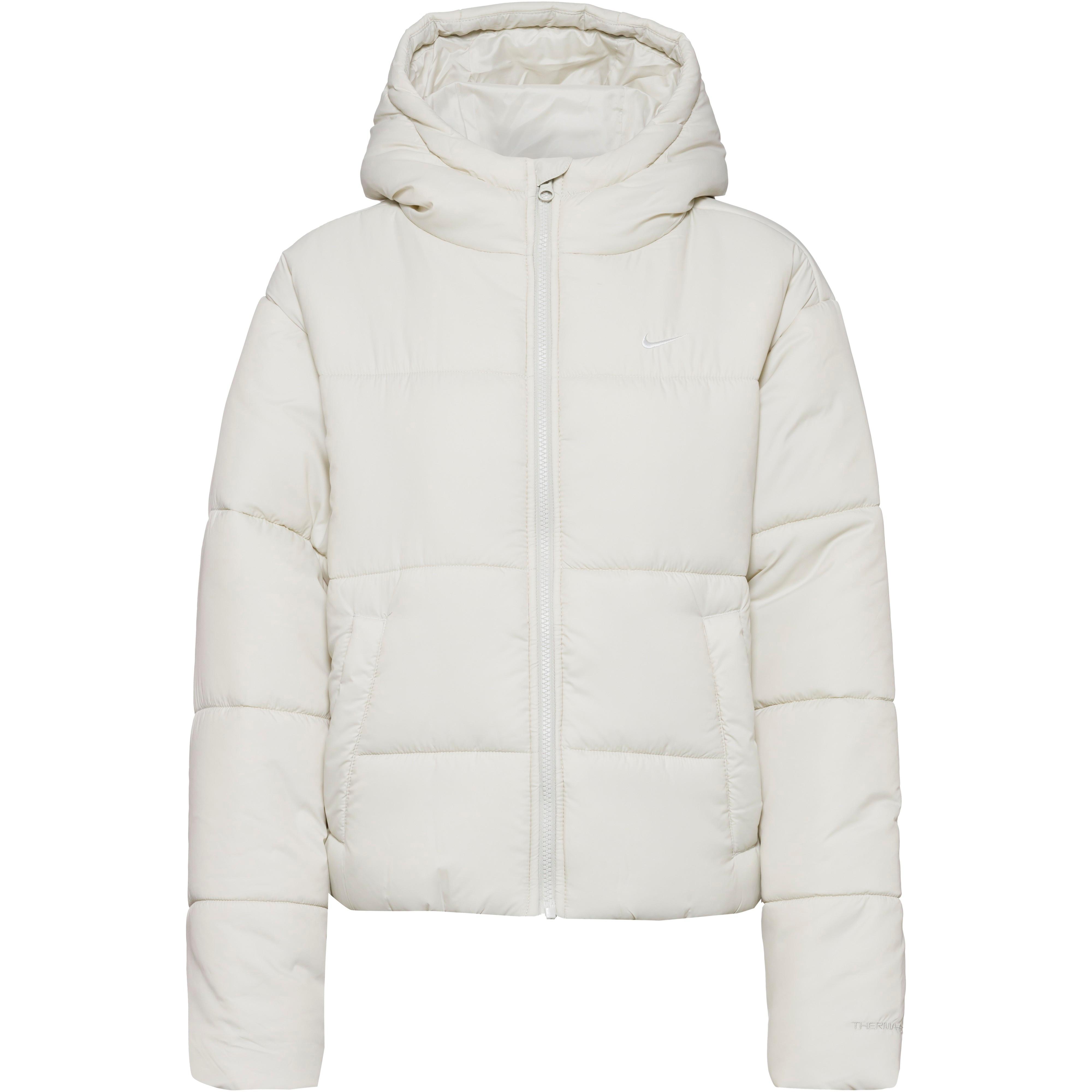 Warm wattierte Steppjacke mit Therma-FIT-Funktion für eine optimale Wärmeisolierung; Kapuze; Kragen mit Kinnschutz; Fronttaschen mit Druckknöpfen; Markendetails; elastischer Saum; Loose Fit; umweltfreundlich im Rahmen des Nike Move to Zero-Projekts hergestellt; Material 100% Polyester.
