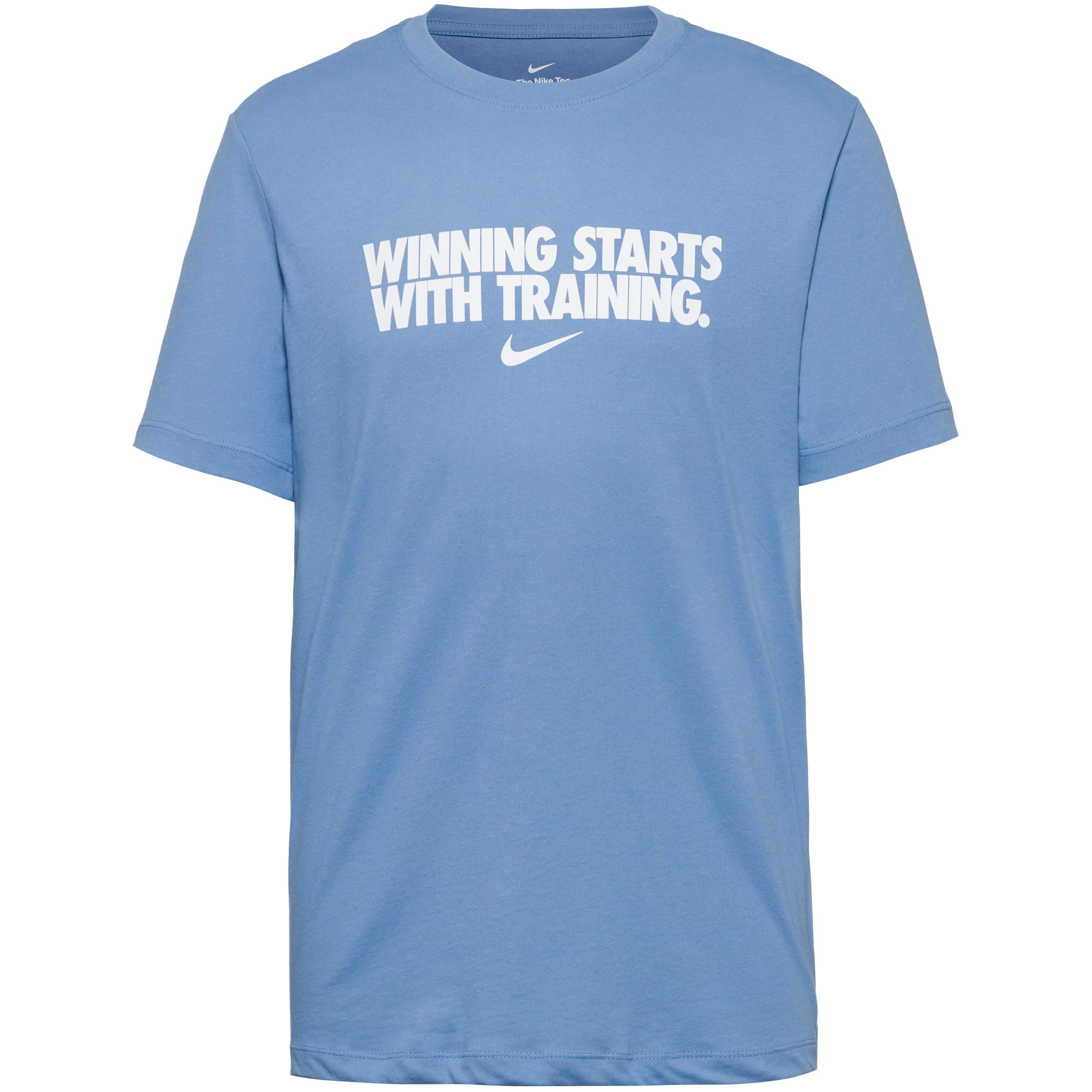 Funktions-T-Shirt mit motivierendem Frontprint; atmungsaktiv, feuchtigkeitsableitend und schnelltrocknend durch Dri-FIT-Technologie; Rundhalsausschnitt; normale Passform; Material 57% Baumwolle, 43% Polyester.