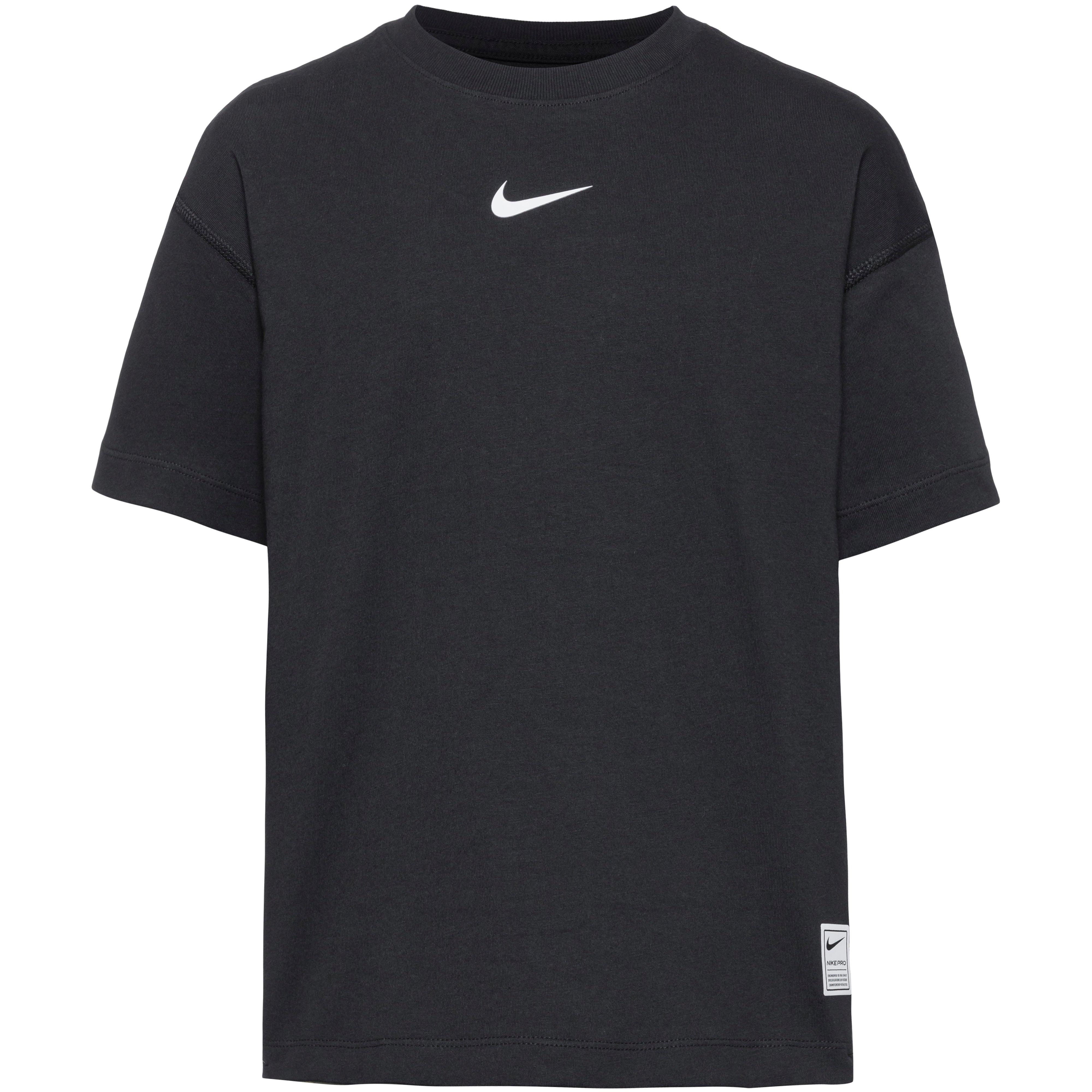 Kurzärmeliges Funktionsshirt für Kinder, mit feuchtigkeitsableitender, schnelltrocknender und atmungsaktiver Dri-FIT-Funktion; flache, reibungsarme Nähte; Rundhalsausschnitt; Swoosh-Logo auf der Front; umweltfreundlich im Rahmen des Nike Move to Zero-Projekts hergestellt; Material I 100% Baumwolle, Material II 79% Polyester, 21% Elastan.