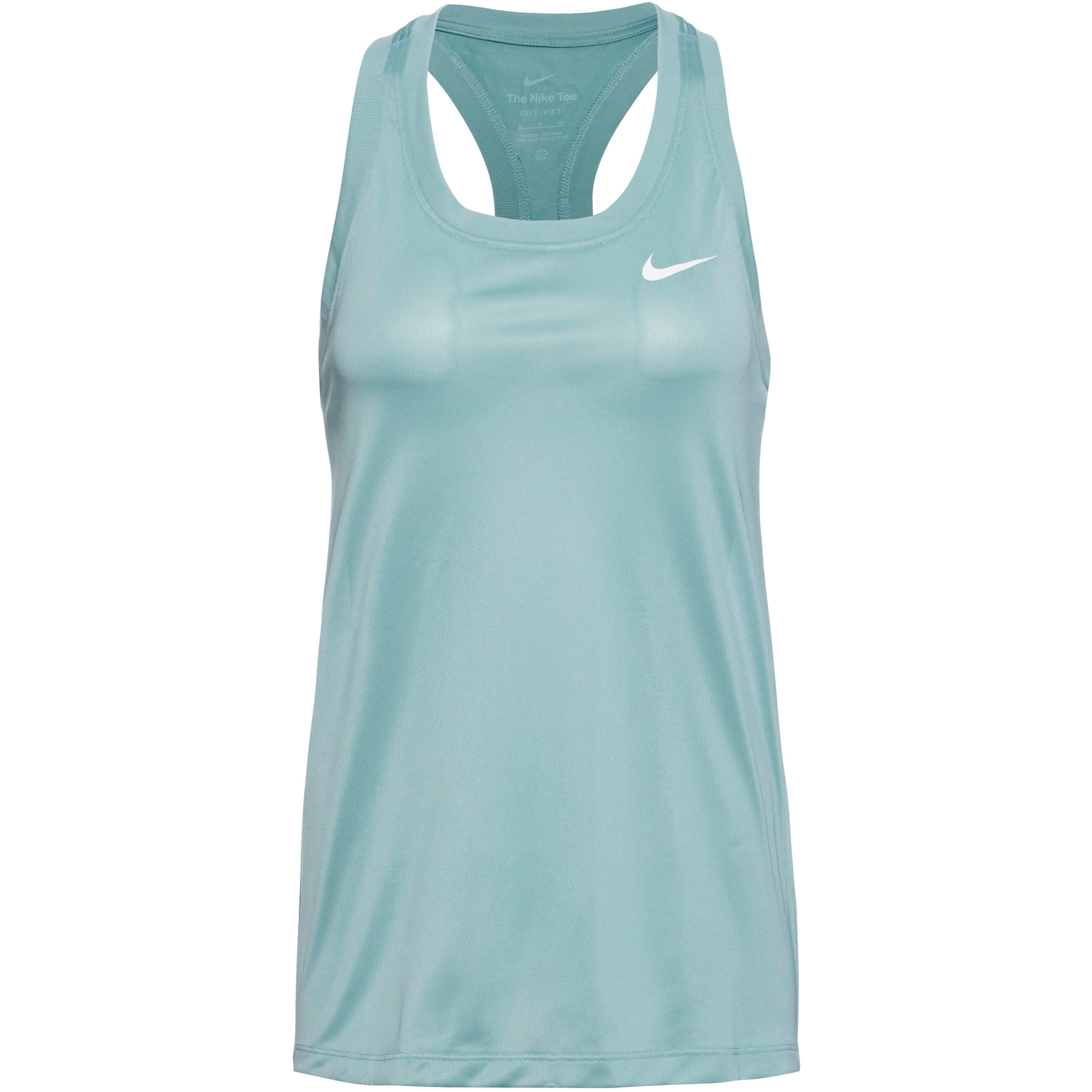 Funktionstank aus semi-transparentem Gewebe, mit feuchtigkeitsableitender, schnelltrocknender und atmungsaktiver Dri-FIT-Funktion; Rundhalsausschnitt; der Ringerrücken sorgt für optimale Bewegungsfreiheit; Markendetails; umweltfreundlich im Rahmen des Nike Move to Zero-Projekts hergestellt; Material 100% Polyester.