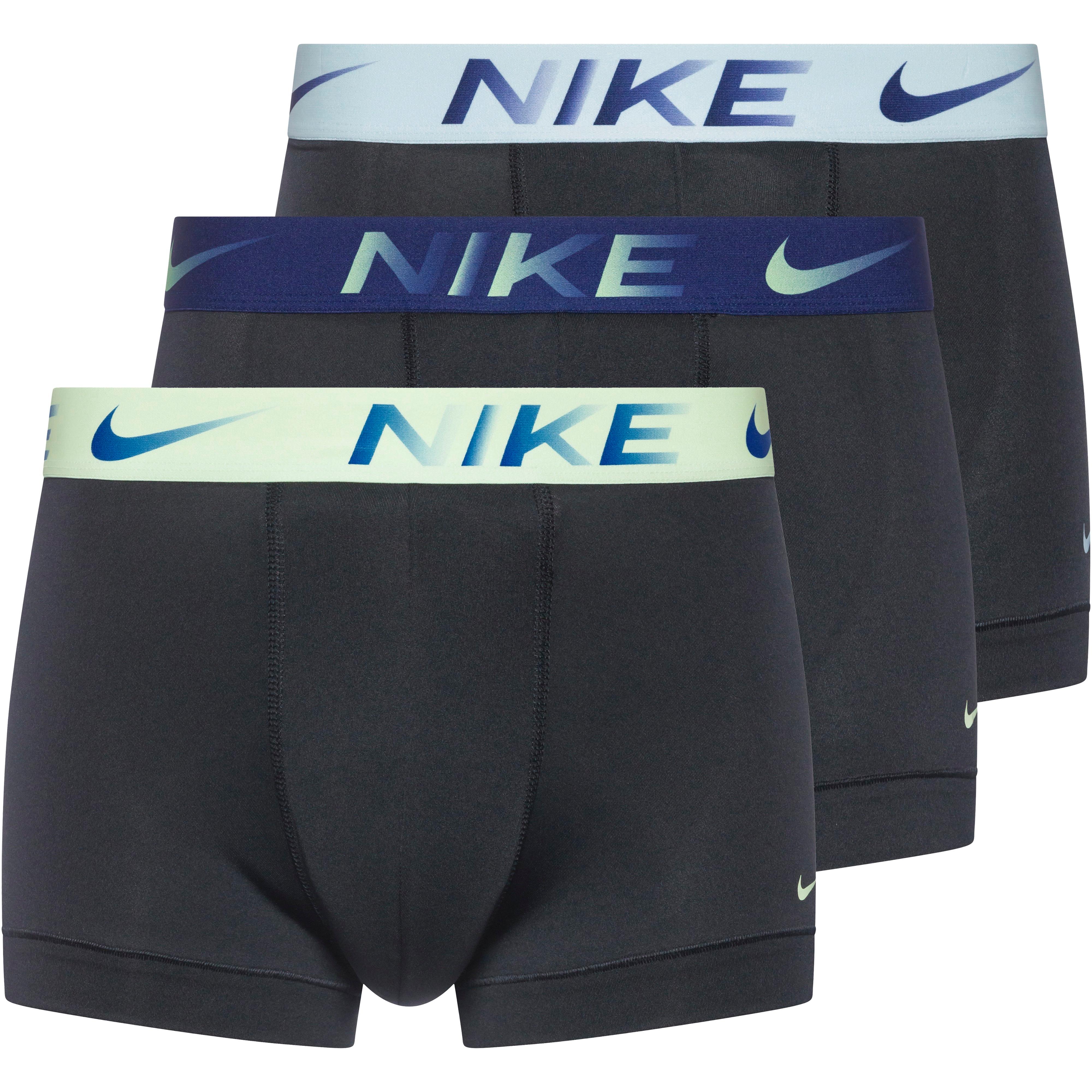 3er-Pack Herren-Boxer aus weichem 4-Wege-Stretchmaterial mit schweißableitenden Mikrofasern; körpernahe, extra kurze Passform; die Dri-FIT-Technologie, bewirkt durch hohen Feuchtigkeitstransport ein angenehm trockenes Tragegefühl; flache, reibungsarme Nähte; breiter Elastikbund mit Markenschriftzug; Material 92% Polyester (recycelt), 8% Elastan.
