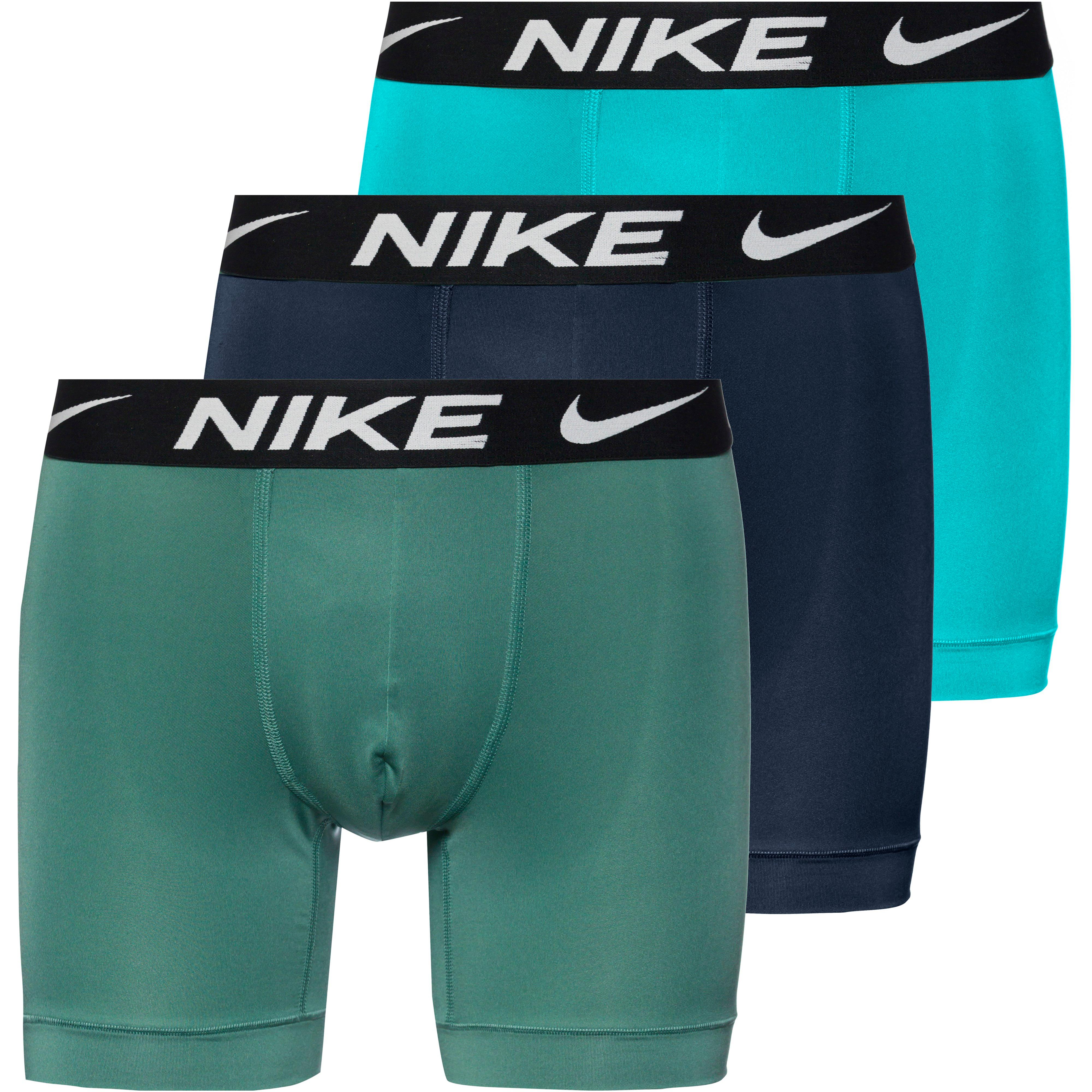 3er-Pack Boxershorts aus Stretchgewebe; mit feuchtigkeitsableitender, schnelltrocknender und atmungsaktiver Dri-FIT-Funktion; Elastikbund mit Markendetails; Beinabschlüsse mit breiten Bündchen für idealen Sitz; Einsatz im Schritt für optimale Bewegungsfreiheit; flache, reibungsarme Nähte; umweltfreundlich im Rahmen des Nike Move to Zero-Projekts hergestellt; Material 92% Polyester (mindestens 75% recycelt), 8% Elastan.