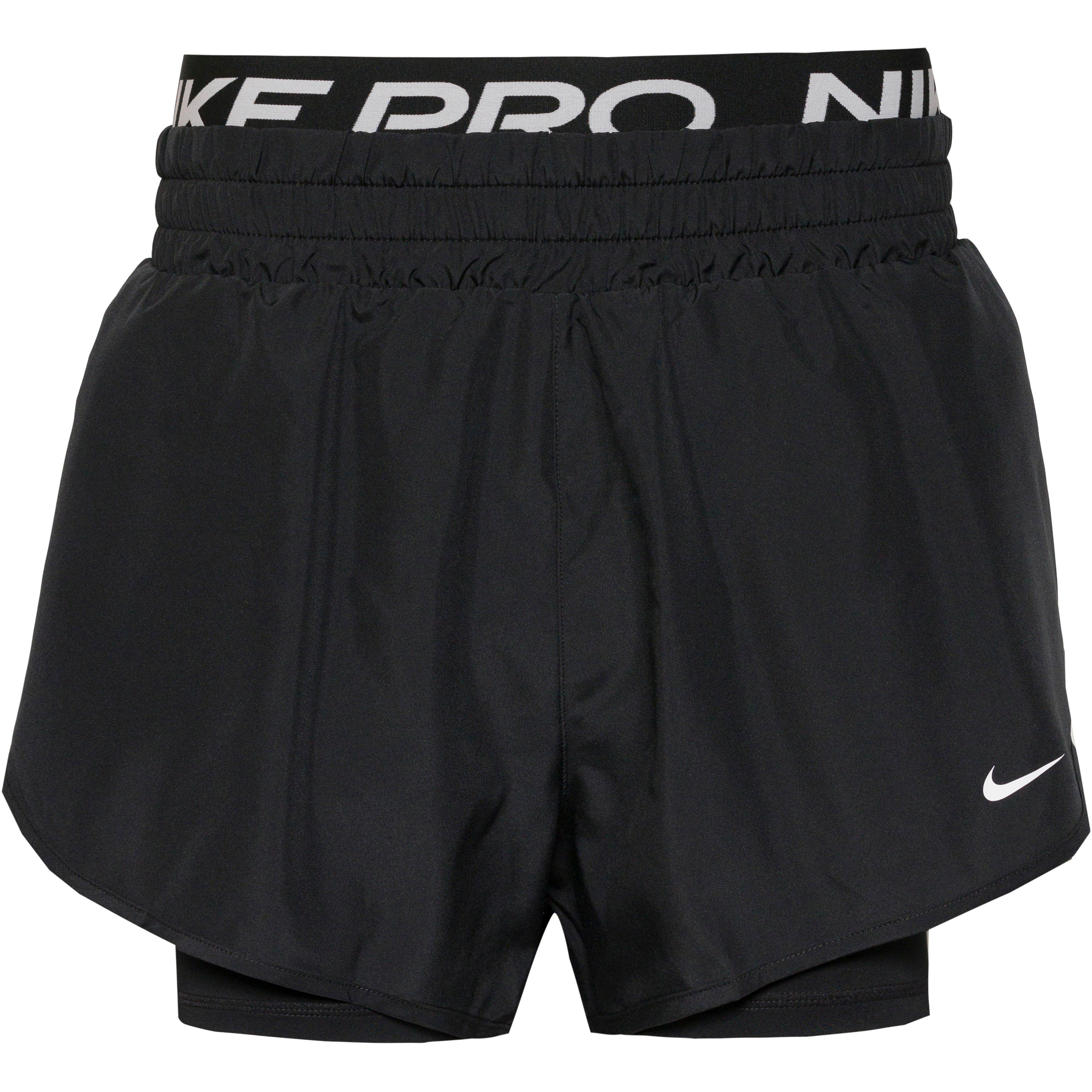 Funktionsshorts im 2in1-Design mit sehr leichten Außenshorts und enganliegender, elastischer Innenhose; trockener und kühler Tragekomfort dank der feuchtigkeitsableitenden, schnelltrocknenden und atmungsaktiven Dri-FIT-Funktion; hoher, doppelter Elastikbund mit Nike Pro-Branding; Swoosh-Detail am linken Bein; Seitenlänge: ca. 26 cm (Größe S); Material I 100% Polyester; Material II 83% Polyester, 17% Elastan.