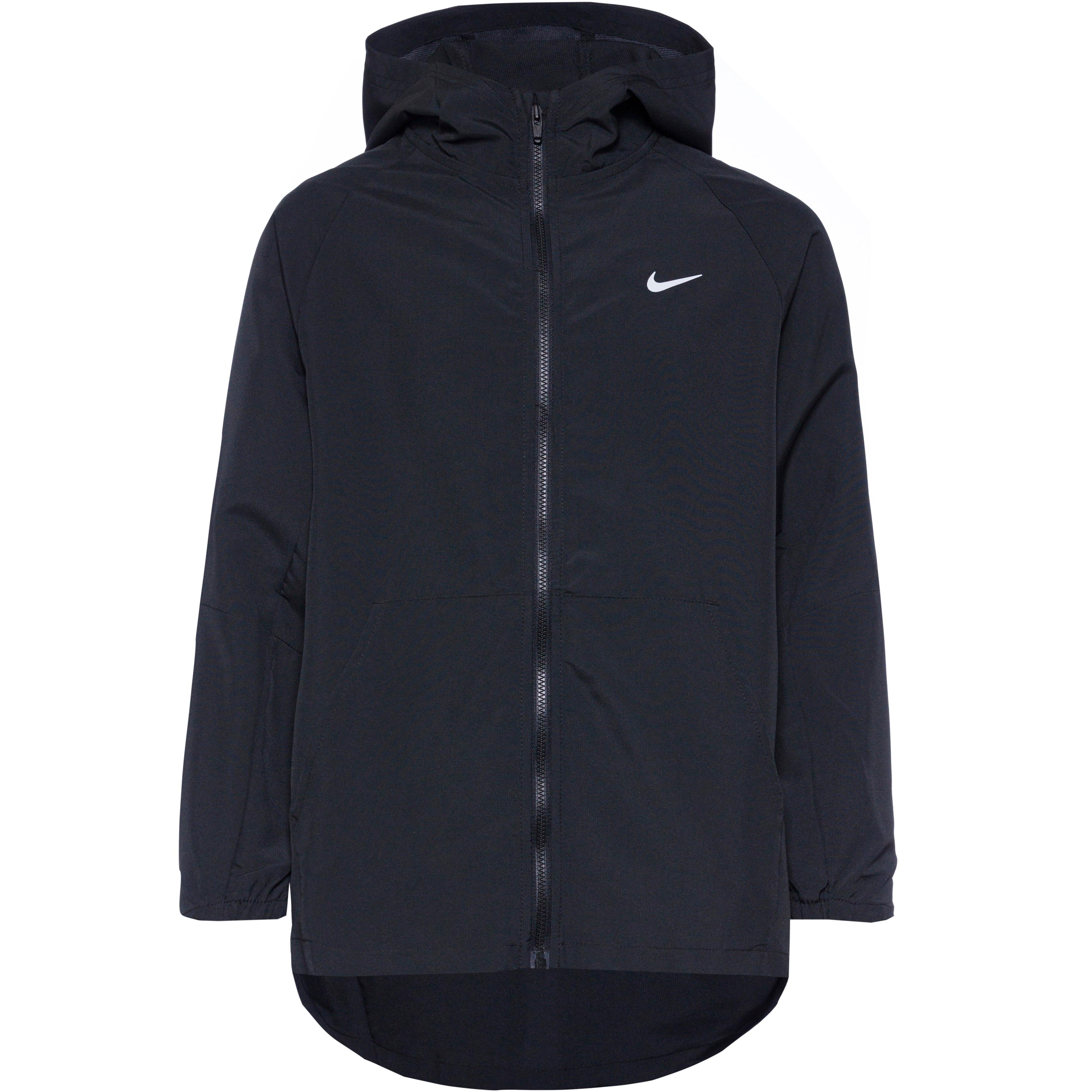 Trainingsjacke mit feuchtigkeitsableitender, schnelltrocknender und atmungsaktiver Dri-FIT-Funktion; Kapuze; Kragen mit Kinnschutz; die Raglanärmel sorgen für optimale Bewegungsfreiheit bei allen Aktivitäten; teilelastische Armabschlüsse; Fronttaschen; Swoosh-Logo auf der Front; reflektierende Elemente; umweltfreundlich im Rahmen des Nike Move to Zero-Projekts hergestellt; Material 100% Polyester.