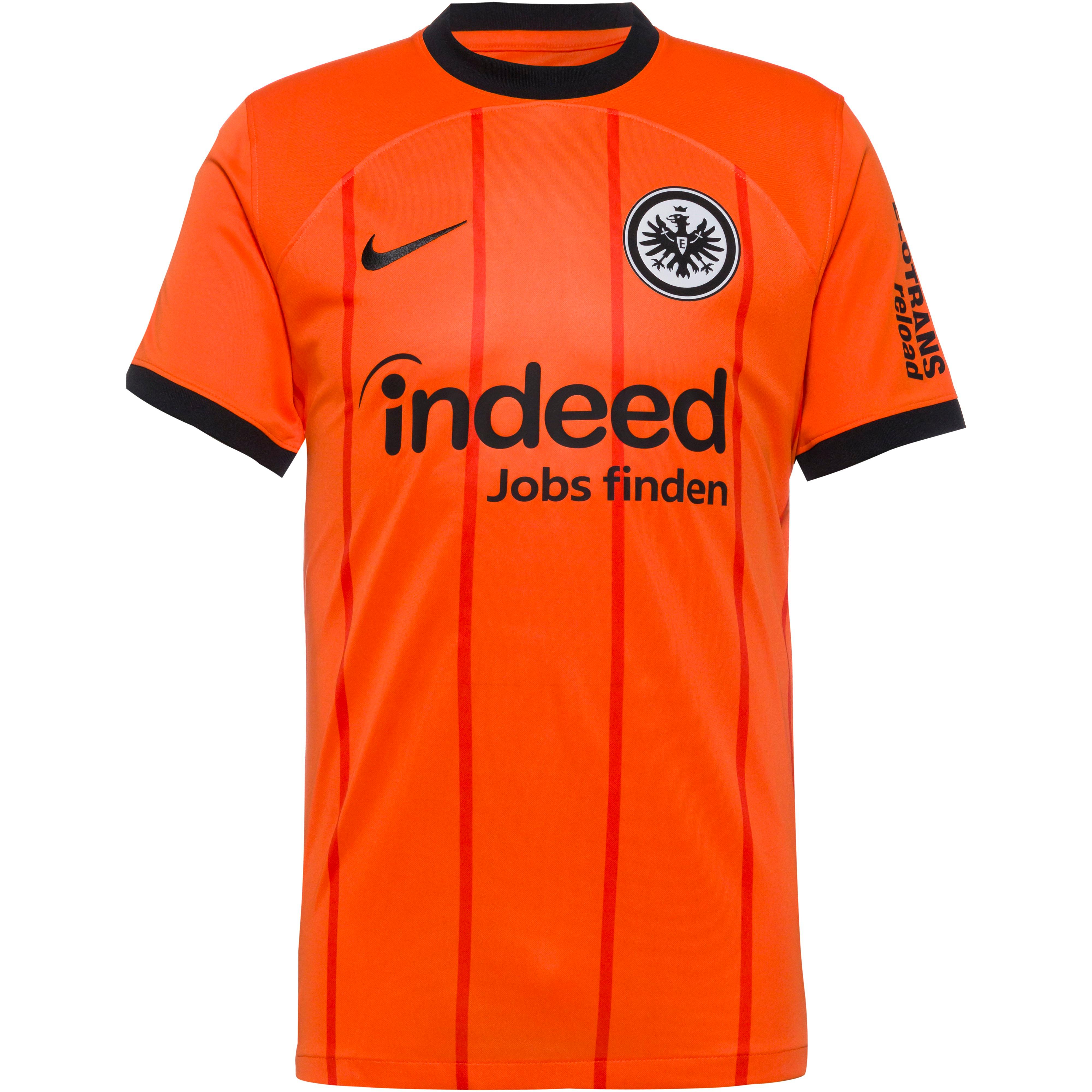 Ausweich-Trikot des Eintracht Frankfurts, für die Saison 2024/25; Slim Fit, feuchtigkeitsregulierend, schnelltrocknend und atmungsaktiv dank Dri-FIT-Technologie; Rundhalsausschnitt; strategisch platzierte Mesh-Einsätze sorgen für angenehme Ventilation; Marken-, Sponsoren- und Vereinsdetails auf der Front; umweltfreundlich im Rahmen des Nike Move to Zero-Projekts hergestellt; Material 100% Polyester.