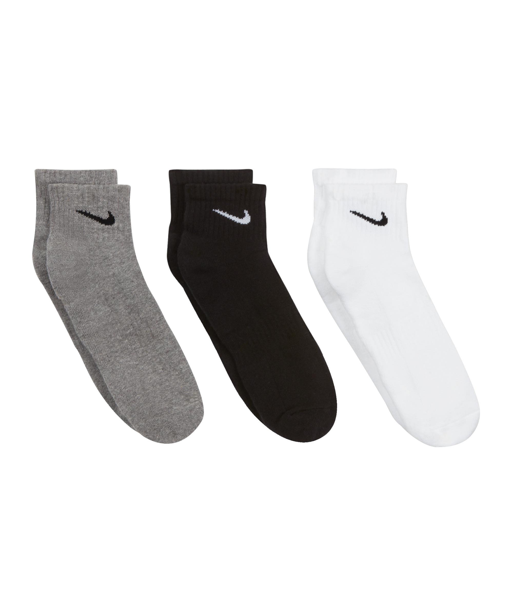 Hier kommt die Nike Sportsocke in Weiß, die dir in der Freizeit ein wunderbares Auftreten garantiert. Das leichte, atmungsaktive, bequeme und dämpfende Modell überzeugt auf ganzer Linie. Du bekommst hier vom 1971 gegründeten und weltweit etablierten Sportartikelhersteller aus den USA eine hervorragende Socke präsentiert. Die Sportsocke hat einen normallangen Schnitt. Produktdetails: Eigenschaften: bequem, dämpfend, leicht 3 Paar Material: 71% Baumwolle, 26% Polyester, 2% Elasthan, 1% Nylon