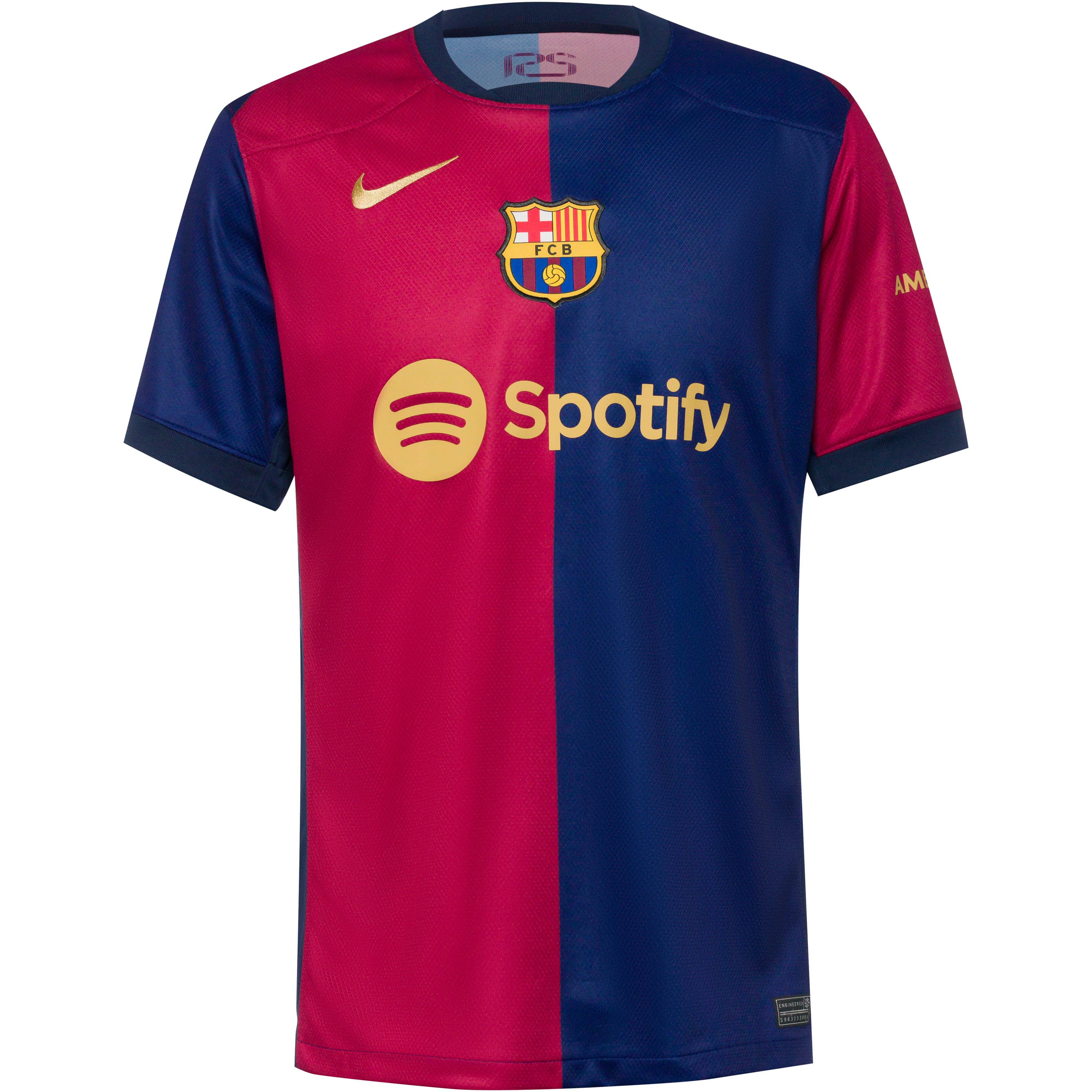 Heim-Trikot des FC Barcelonas, für die Saison 2024/25; feuchtigkeitsregulierend, schnelltrocknend und atmungsaktiv dank Dri-FIT-Technologie; Rundhalsausschnitt; Marken-, Sponsoren- und Vereinsdetails auf der Front; umweltfreundlich im Rahmen des Nike Move to Zero-Projekts hergestellt; Material 100% Polyester.