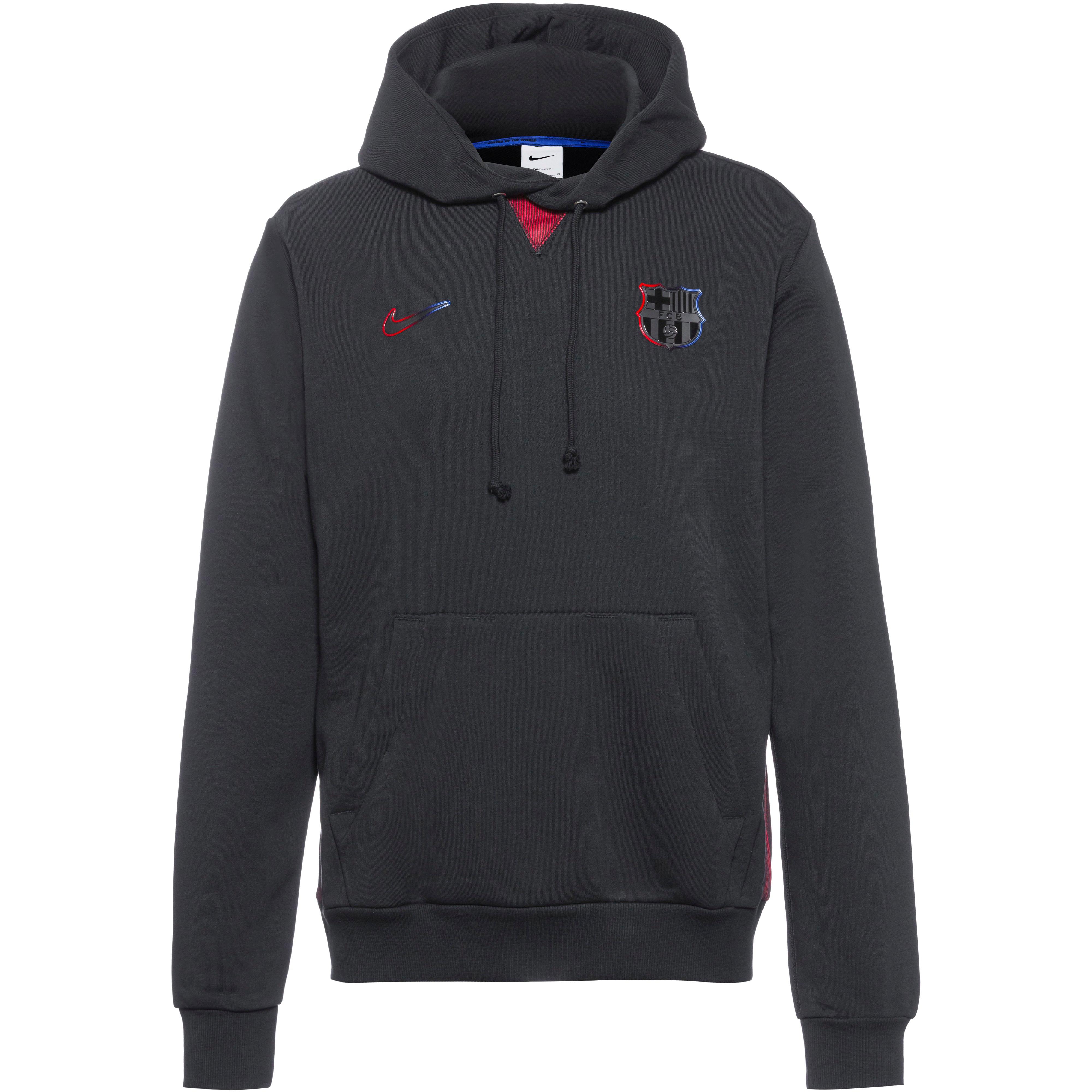 Fanhoodie mit Vereinsdetails des FC Barcelonas; feuchtigkeitsregulierend, schnelltrocknend und atmungsaktiv dank Dri-FIT-Technologie; Kapuze mit integriertem Kordelzug; die elastischen Einsätze in den Seiten sorgen für optimale Bewegungsfreiheit bei allen Aktivitäten; Kängurutasche; 1 Seitentasche mit Reißverschluss; Material I 54% Polyester, 46% Baumwolle, Material I 54% Polyester, 27% Elastan, 19% Polyamid, Material III 96% Baumwolle, 4% Elastan, Material IV 100% Baumwolle.