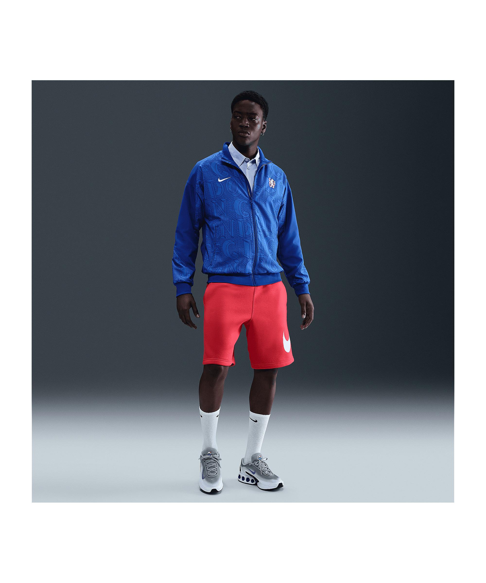 Mit der Nike FC Chelsea London Strike Anthem Jacke kannst du deinen Lieblingsverein stilvoll unterstützen und gleichzeitig optimal für dein Training gerüstet sein. Diese Jacke ist perfekt für das Training und zeigt stolz das Vereinswappen des FC Chelsea London auf der Brust. Dank der Dri-FIT-Technologie von Nike bleibt dein Körper trocken und komfortabel, selbst wenn du ins Schwitzen kommst. Die Jacke besteht teilweise aus recycelten Materialien, was sie zu einer umweltfreundlichen Wahl macht. Schnapp dir diese Jacke und zeige deine Unterstützung für den FC Chelsea London. Du wirst die Qualität und den Komfort von Nike bei jedem Tragen spüren. Produktdetails:Herstellerfarbbezeichnung: RUSH BLUE/GAME ROYAL/WHITEHauptfarbe: BlauTechnologie-Eigenschaften: atmungsaktiv, komfortabel, robust, leicht, schweißableitendTechnologie: Dri-FITNachhaltigkeit: Teilweise aus recycelten MaterialienMaterial: 100% Polyester