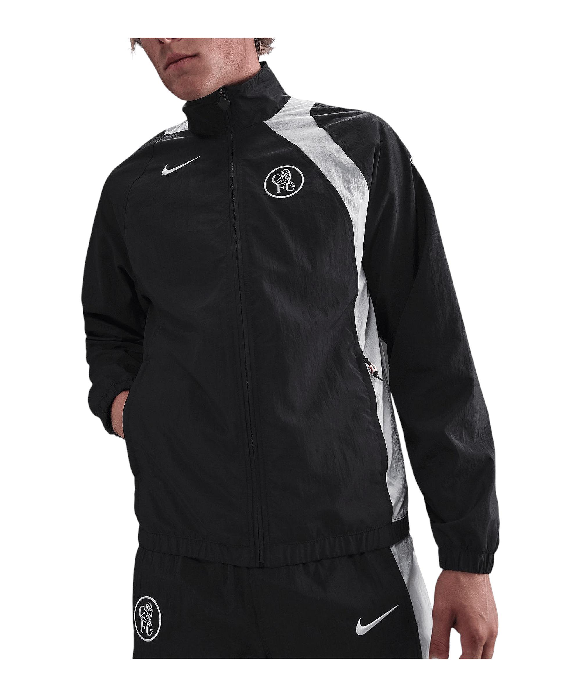 Mit der Nike FC Chelsea London T90 Jacke kannst du dein Teamstolz überall zeigen und dich gleichzeitig warmhalten. Diese Jacke ist ideal für das Training oder um dein Team bei jedem Wetter zu unterstützen. Das Vereinswappen auf der Brust macht klar, für welches Team dein Herz schlägt. Die Reißverschlusstaschen an der Seite bieten dir praktischen Stauraum für deine Essentials. Der durchgehende Reißverschluss sorgt dafür, dass du die Jacke schnell an- und ausziehen kannst, wenn es darauf ankommt. Schnapp dir die Nike FC Chelsea London T90 Jacke und zeig, dass du ein echter Fan bist. Du wirst die Qualität und den Style von Nike in jedem Moment spüren. Produktdetails:Herstellerfarbbezeichnung: BLACK/FIELD SILVER/(FIELD SILVER) (No Sponsor)Hauptfarbe: SchwarzTechnologie-Eigenschaften: komfortabelTaschen: Reißverschlusstaschen an der SeiteMaterial: 100% Nylon