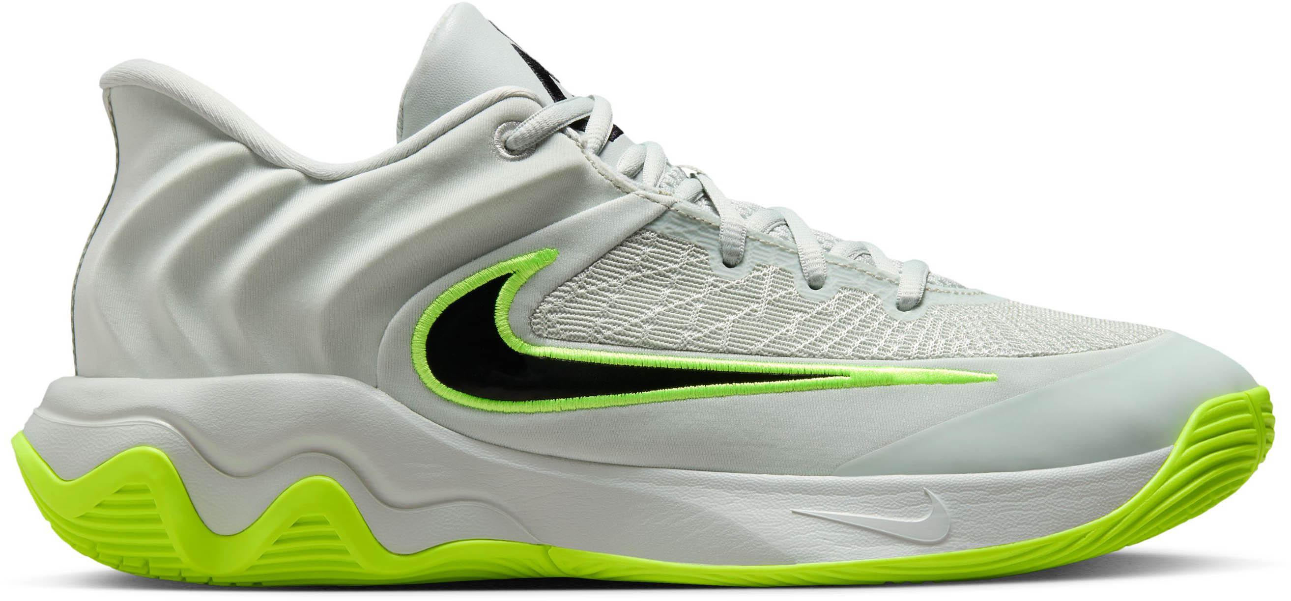 Basketballschuhe aus Kunstleder und Textil-Obermaterial mit Schnürung und schlanker Fersenform für einen optimalen Halt; internes Stützsystem; Swoosh-Logo an der Seite; leicht profilierte Gummi-Außensohle; aus einer Kombi aus Kunstleder und Textil.