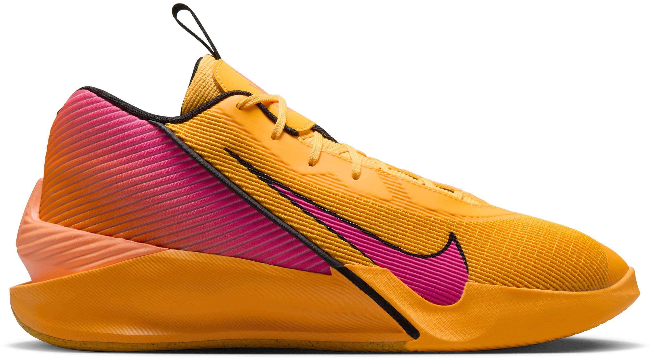 Sehr leichte Basketballschuhe mit höherem Kragen für besseren Halt bei hohen Sprüngen; atmungsaktives Textil-Obermaterial mit weicher Struktur; klassische Schnürung; Schlaufe an der Lasche erleichtert das An- und Ausziehen; 2 weiche, übereinander gestapelte Schaumstoffelemente in der Zwischensohle für weiche Landungen; speziell geformter Fersenbereich absorbiert zusätzlich den Aufprall; robuste Gummi-Außensohle umschließt die Seiten des Vorfußes und sorgt für zusätzliche Stabilität und Strapazierfähigkeit.