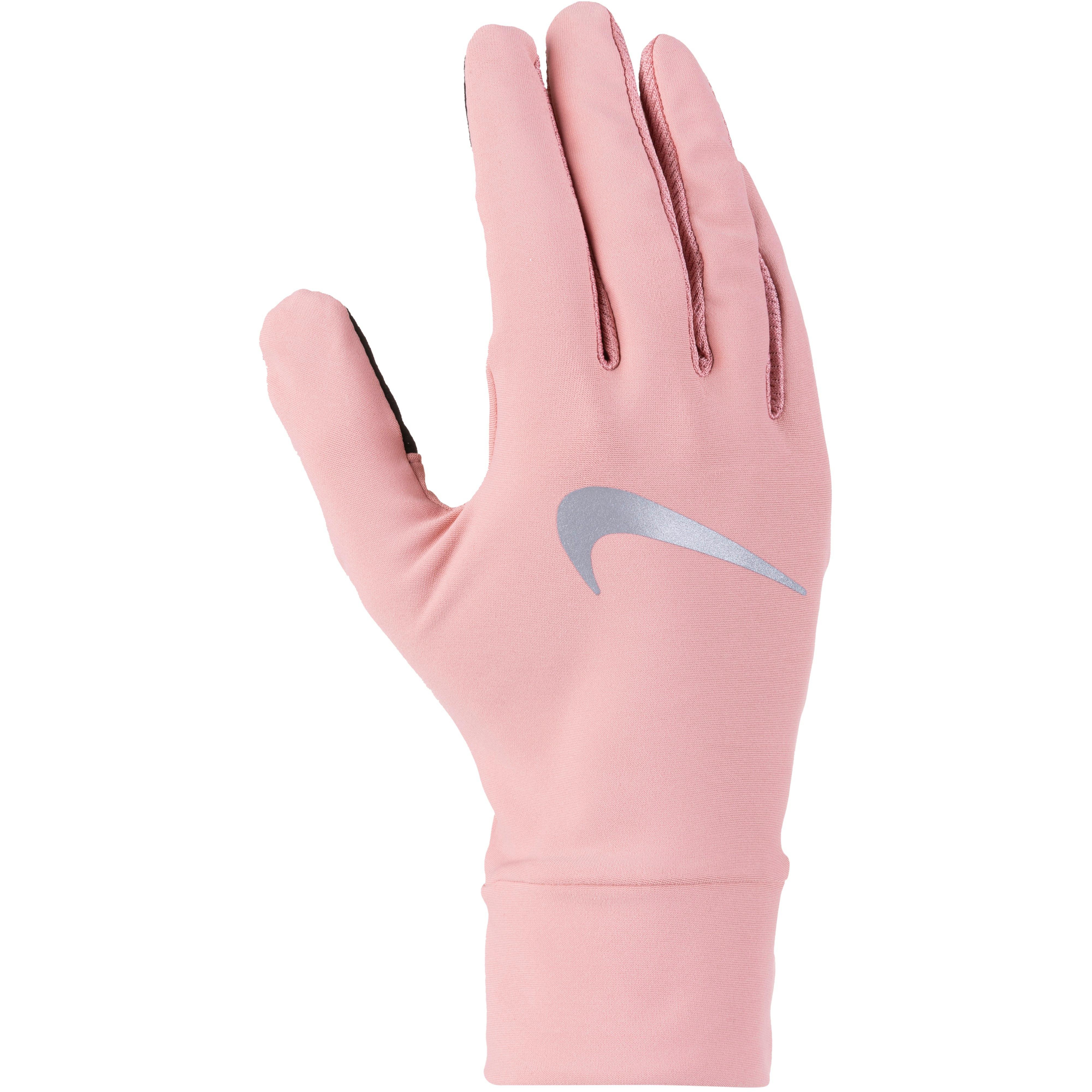 Touchscreenkompatible Laufhandschuhe mit feuchtigkeitsableitender, schnelltrocknender und atmungsaktiver Dri-FIT-Funktion; diverse Mesh-Einsätze sorgen für angenehme Ventilation; reflektierende Elemente; Material 72% Polyester, 13% Elastan, 9% Polyamid, 8% Polyurethan, Material II 85% Polyester, 15% Elastan, Material III 93% Polyester, 7% Elastan.