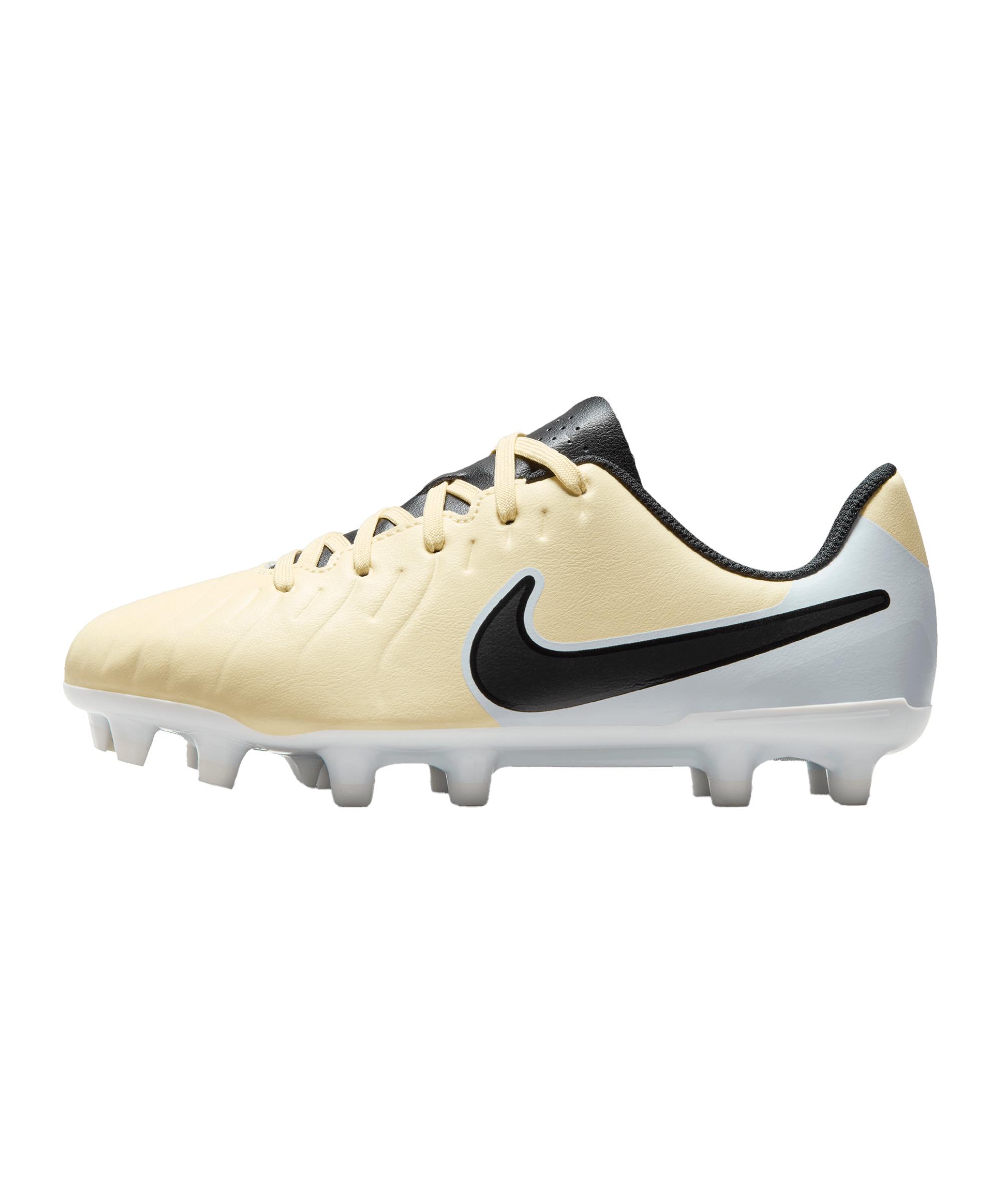 Mit dem Kinder-Nocken-Fußballschuh in Orange bringt Nike ein Produkt heraus, mit dem du die beste Grundlage für eine schnelle Spielweise bekommst. Dank der normalen Schnürung ist der Sitz einfach perfekt. Durch diesen Schuh mit seiner Nockensohle wird Spielern aller Positionen die Möglichkeit gegeben, ein grandioses Auftreten an den Tag zu legen. Dadurch liefert der Naturrasenschuh die perfekte Mithilfe für den nächsten Sieg. Das super bequeme und leichte Modell überzeugt auf ganzer Linie. Außerdem werden dir eine hohe Strapazierfähigkeit und ein optimaler Grip geboten. Auf trockenen Rasenfeldern weiß dieser Schuh absolut zu gefallen. Du bekommst hier vom 1971 gegründeten und international erfolgreichen Sportartikelhersteller aus Beaverton einen hervorragenden Basic-Nocken-Schuh präsentiert. Produktdetails: Nocken-Fußballschuh für Kinder Geeignet für trockene Rasenfelder durch die FG-Sohle Laufsohle: Sonstiges Material