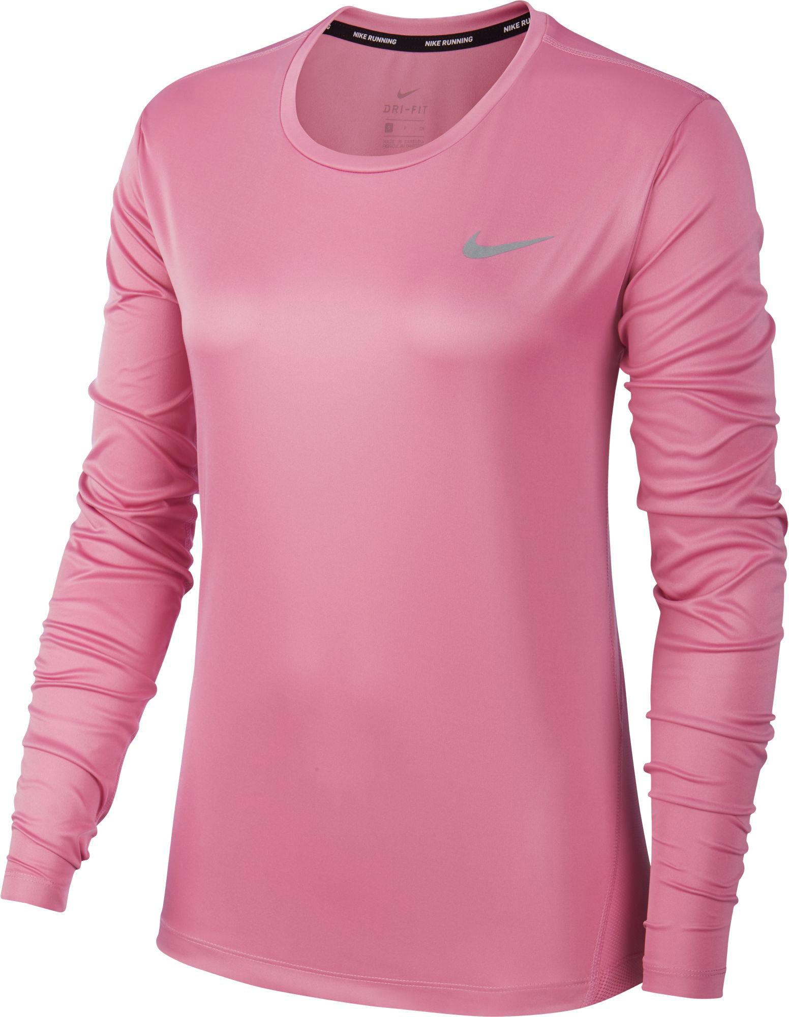Nike MILER. Elastisches Funktionsshirt mit langen Ärmeln; runder Halsausschnitt und Nackenband; atmungsaktive Bereiche aus Mesh; abgerundeter Saum hinten; schweißableitende Dri-FIT-Funktion; Swoosh-Logo auf der Brust; Standard Fit; Material 100% Polyester.