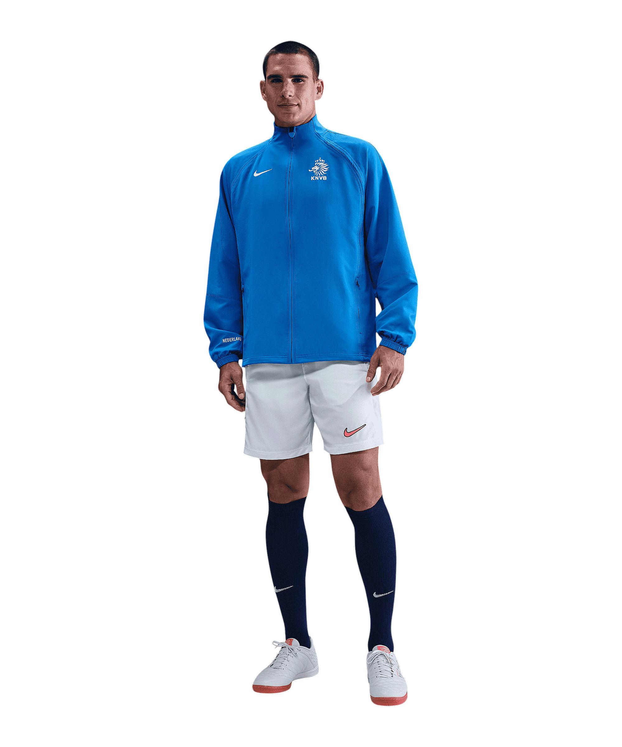 Mit der Nike Netherlands Reissue Jacke kannst du deinen Teamgeist zeigen und dich gleichzeitig warmhalten. Diese Jacke ist ideal für das Training oder um deine Unterstützung für die niederländische Nationalmannschaft zu demonstrieren. Das Vereinswappen auf der Brust lässt dich stolz wie ein echter Fan fühlen. Die Reißverschlusstaschen an der Seite bieten dir praktischen Stauraum für deine Essentials. Der durchgehende Reißverschluss sorgt dafür, dass du die Jacke schnell an- und ausziehen kannst, egal ob auf dem Platz oder unterwegs. Schnapp dir die Nike Netherlands Reissue Jacke und spüre die Leidenschaft für dein Team. Du wirst die Qualität und den Style von Nike lieben! Produktdetails:Herstellerfarbbezeichnung: LT PHOTO BLUE/LOYAL BLUE/WHITEHauptfarbe: BlauTaschen: Reißverschlusstaschen an der SeiteTechnologie-Eigenschaften: atmungsaktiv, komfortabel, robust, leicht, schweißableitendMaterial: 100% Polyester