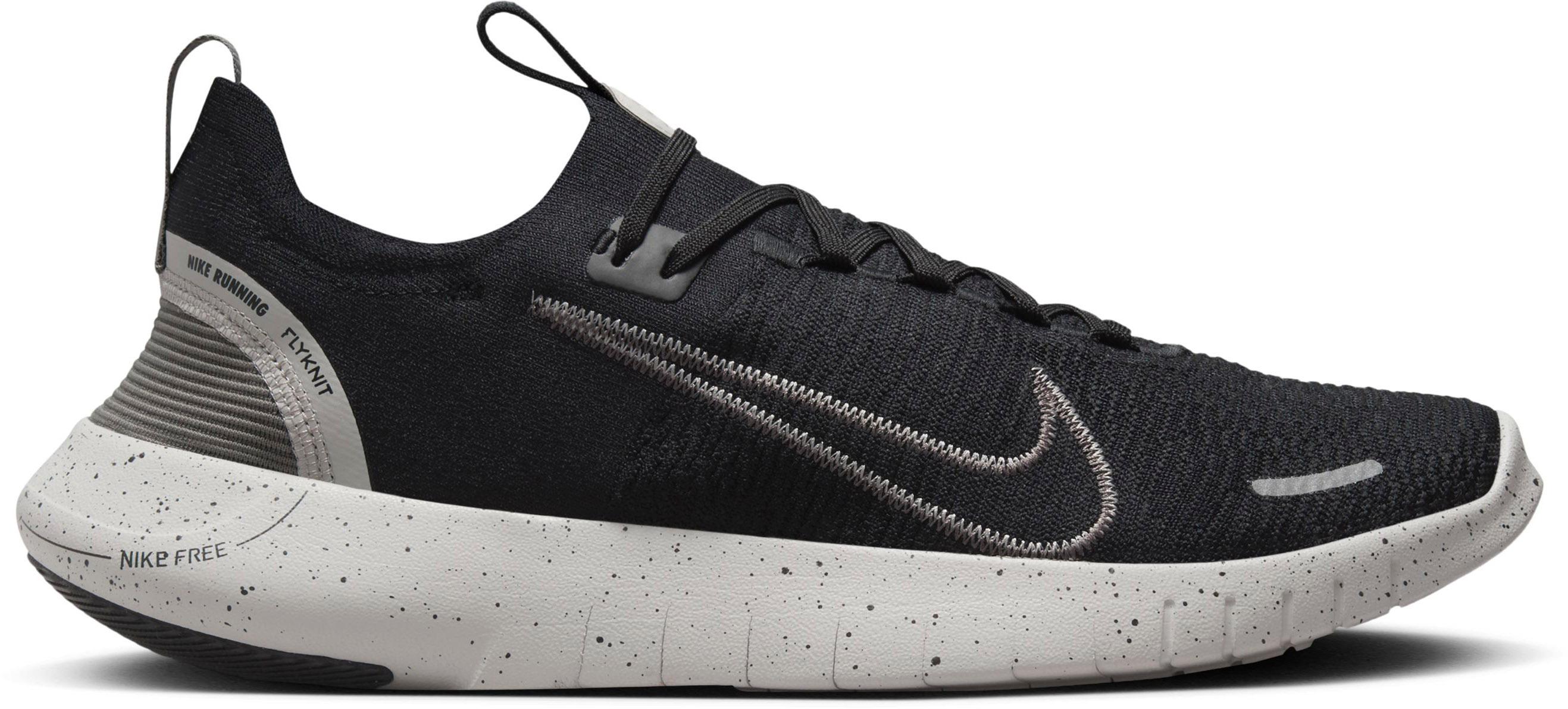 Laufschuhe mit barfußähnlichem Tragegefühl; enganliegendes Flyknit-Obermaterial für exakten Halt und Flexibilität; atmungsaktiv und elastisch; klassische Schnürung; einfaches Anziehen mit Zuglaschen an Zunge und Ferse; sehr leichte Mittelsohle aus weichem, reaktionsfreudigem Schaumstoff; Außensohle aus mindestens 13% Nike Grind-Material aus recycelten Produktionsresten; lasergeschnittene Kerben für mehr Flexibilität in der Sohle; ideal für Straße und Park sowie für Wald- und Feldwege geeignet; normale Pronation und normale Schuhweite.