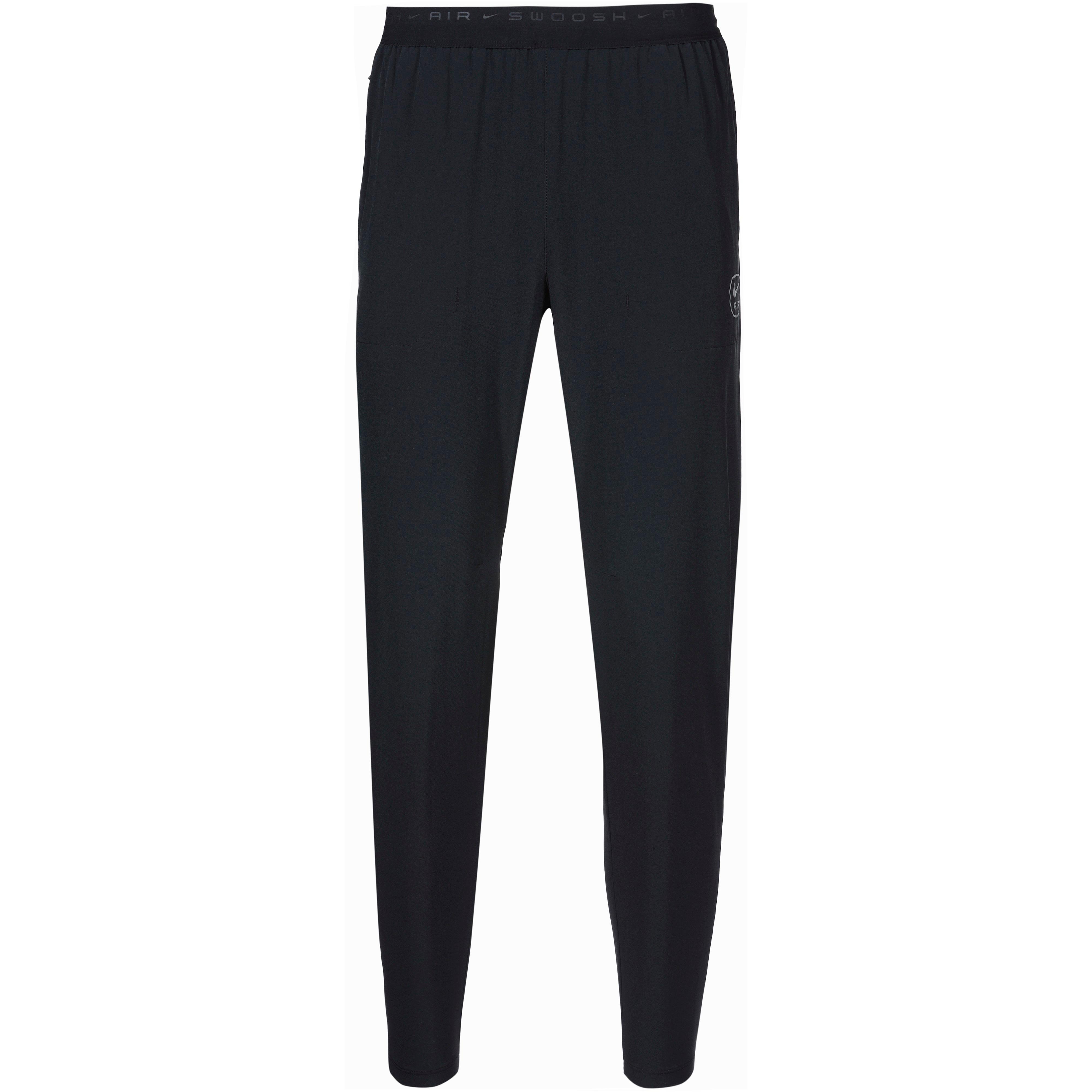 Besonders leichte Hose mit elastischem Bund und Kordelzug; 2 Reißverschlusstaschen; schmal zulaufendes Bein mit Reißverschluss an den Abschlüssen; Logoprint; reflektierende Details; Material 87% Polyester, 13% Elastan.