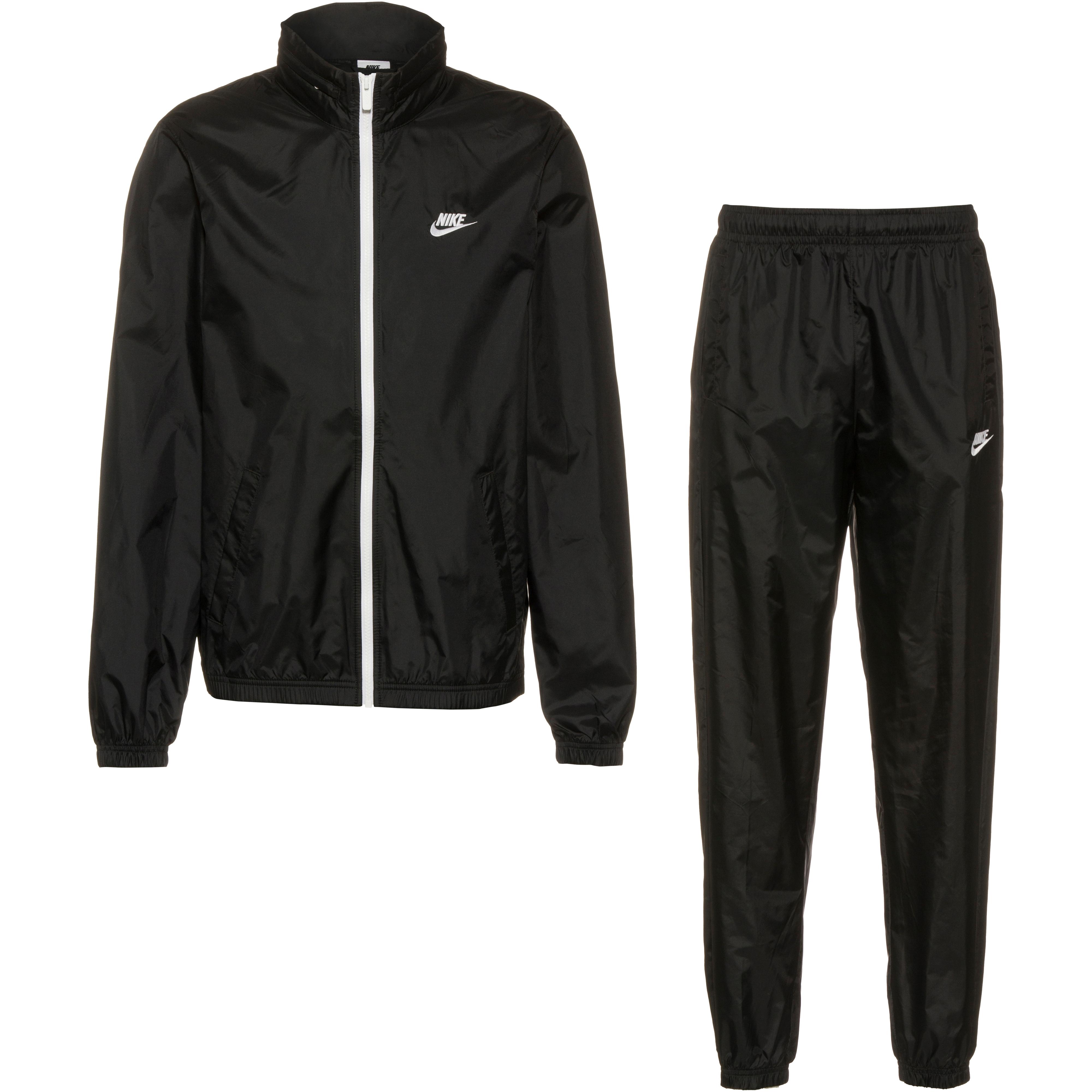 Klassisch geschnittener Trainingsanzug aus leichtem, wasserabweisendem Gewebe; Jacke mit verstaubarer Kapuze; durchgehender Frontreißverschluss; hochabschließender Kragen; 2 seitliche, meshgefütterte Eingriffstaschen; Arm-und Saumabschlüsse mit Gummibund; meshgefütterte Hose mit Elastikbund und innenliegendem Kordelzug; 2 seitliche Eingriffstaschen; Beinabschlüsse mit Gummibund; Material I 100% Polyamid, Material II 100% Polyester.