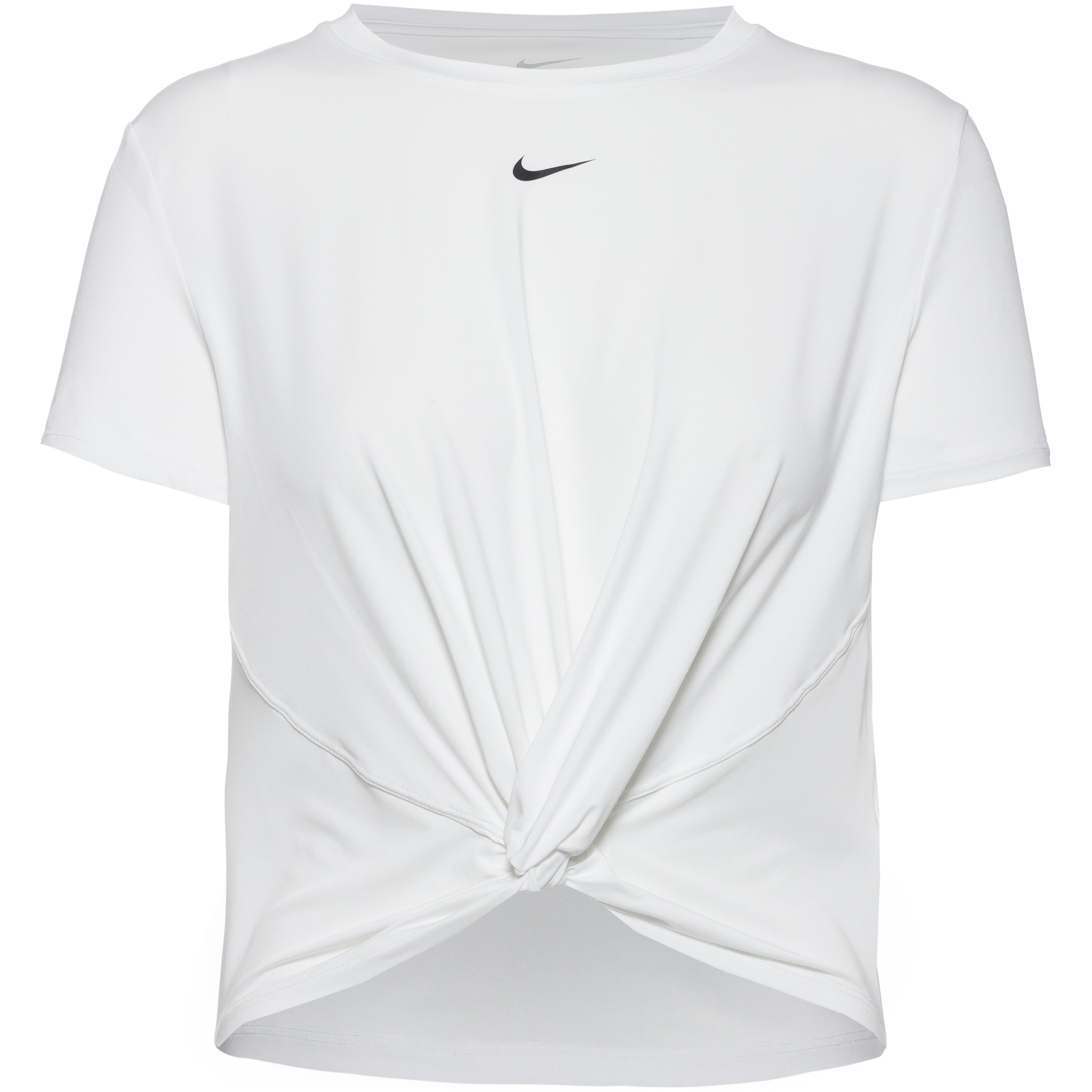 Twist-Oberteil aus leichtem, weichem Material; für Sport und Freizeit gleichermaßen geeignet; feuchtigkeitsableitend, schnelltrocknend und atmungsaktiv durch Dri-FIT-Technologie; Rundhalsausschnitt; Swoosh-Logo auf der Vorderseite; leicht verkürzter Schnitt; normale Passform; Material 89% Polyester, 11% Elastan.