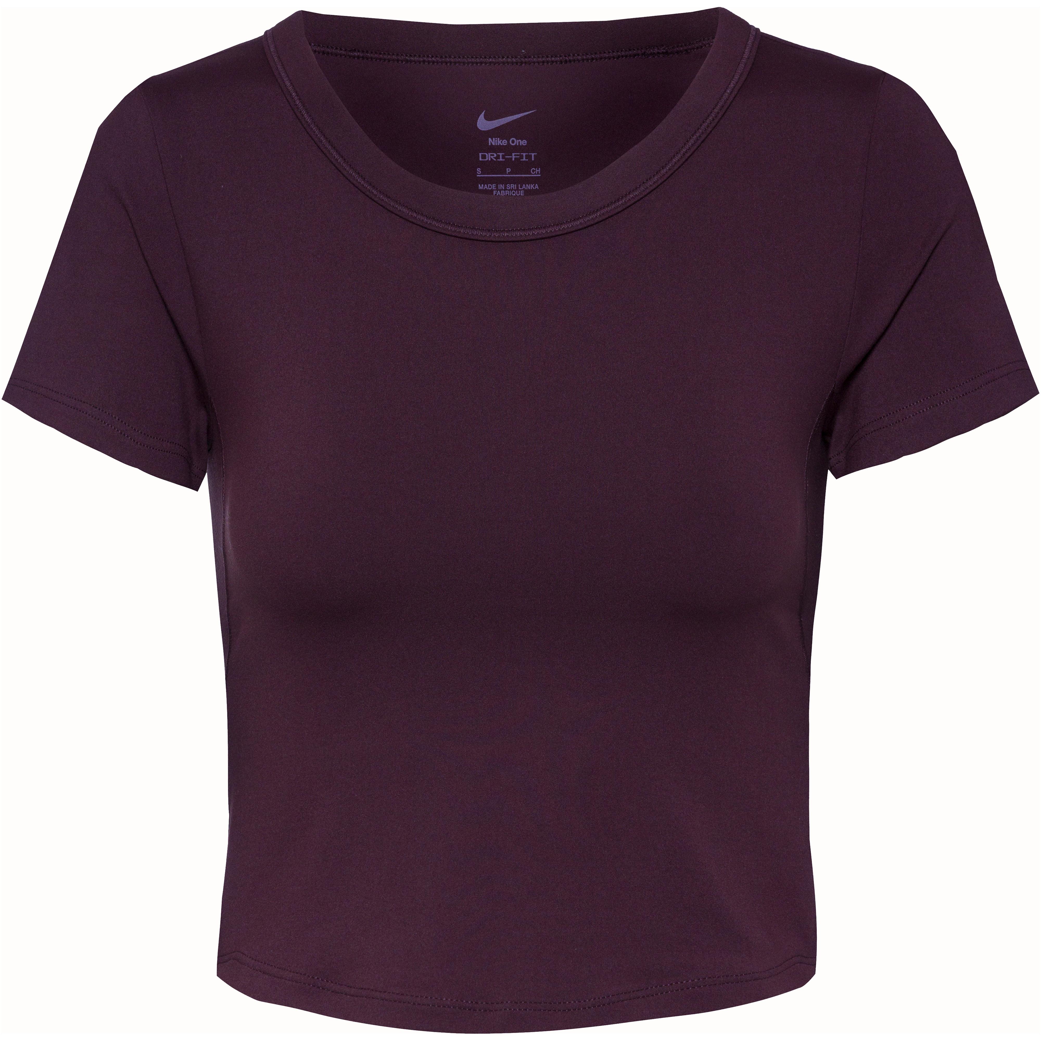 Kurzes, enganliegendes Funktionsshirt aus Stretchgewebe, mit feuchtigkeitsableitender, schnelltrocknender und atmungsaktiver Dri-FIT-Funktion; Rundhalsausschnitt; umweltfreundlich im Rahmen des Nike Move to Zero-Projekts hergestellt; Material 80% Polyester, 20% Elastan.