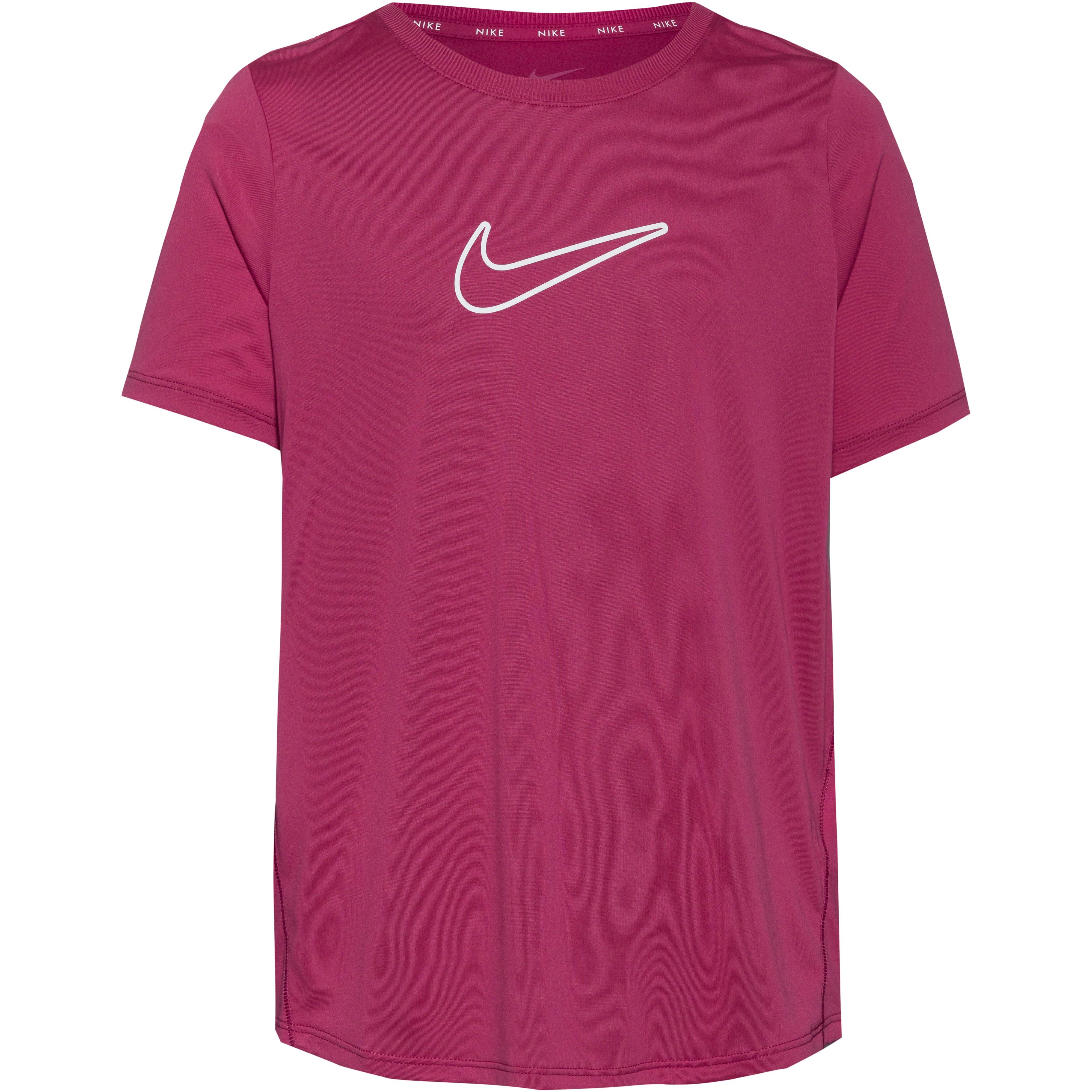 Slim Fit Funktionsshirt für Kinder, mit feuchtigkeitsableitender, schnelltrocknender und atmungsaktiver Dri-FIT-Funktion; Rundhalsausschnitt; Swoosh-Logo auf der Front; der Einsatz im Achselbereich sorgt für hohe Bewegungsfreiheit; umweltfreundlich im Rahmen des Nike Move to Zero-Projekts hergestellt; Material 100% Polyester.