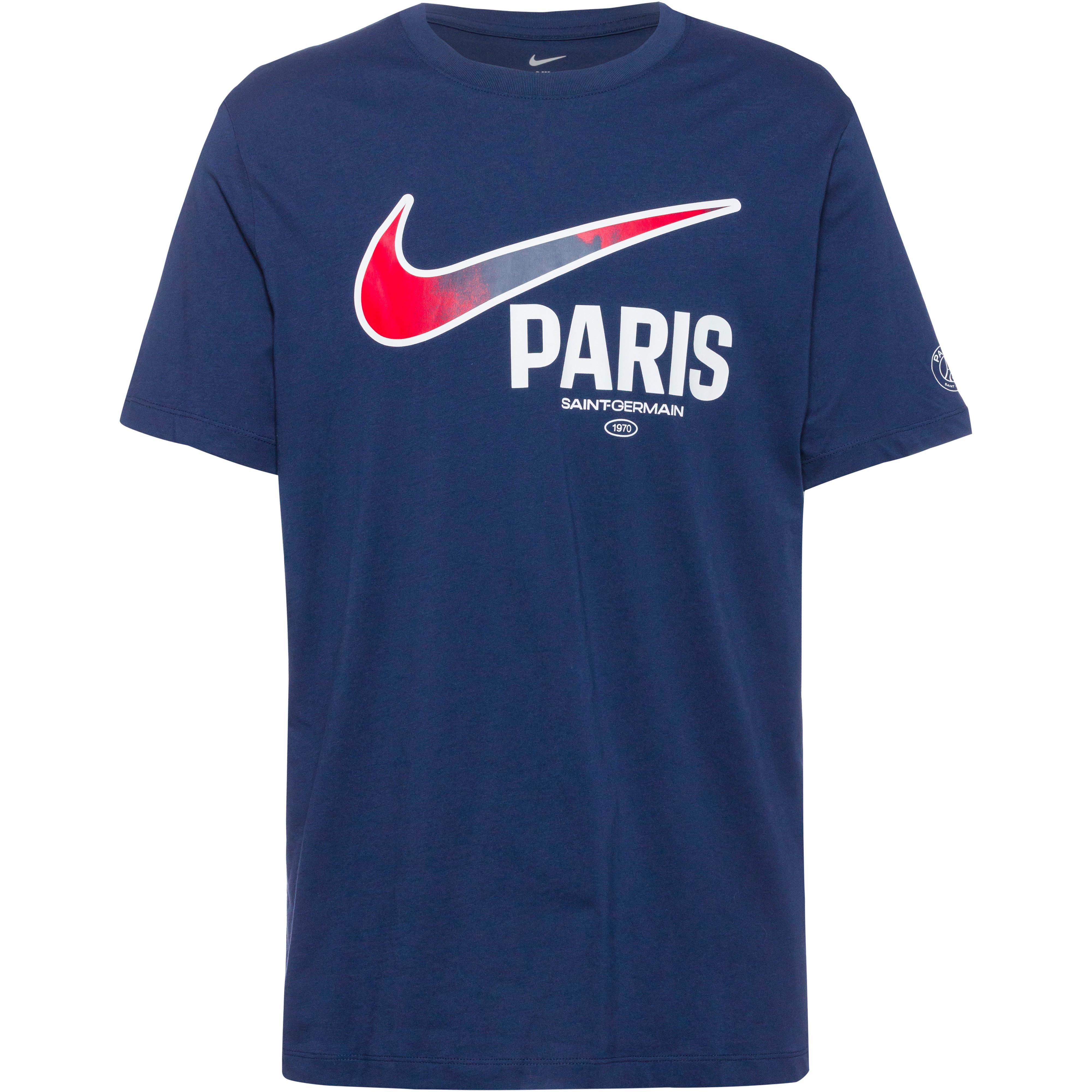 T-Shirt für Fans von Paris Saint-Germain; aus weicher Baumwolle; Team-Aufdruck und großer Swoosh auf der Vorderseite; kleines Vereinsdetail am Ärmel; Rundhalsausschnitt; reguläre Passform; Material 100% Baumwolle.